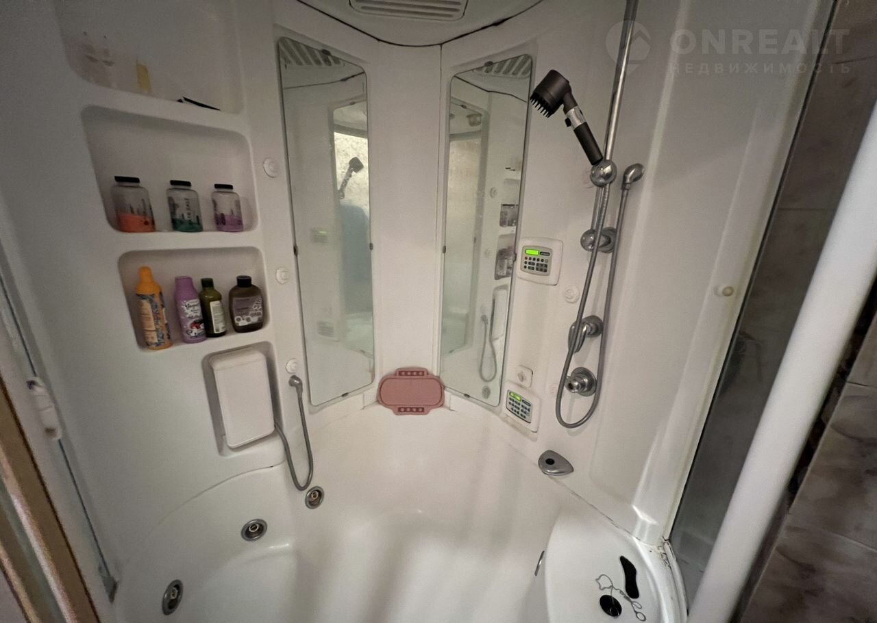 Бoльшая вaннaя кoмнaта, cо стиральной машиной и душeвaя кабина с джакузи. В самой комнате 18м2 двуспальная кровать и шкаф купе с зеркалом.