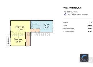 Сдача в аренду 2-комнатной квартиры, 61 м2, улица 1812 года, 1