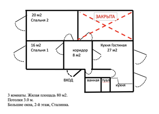 Общая площадь: 80 м2