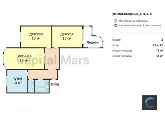 Сдается в аренду трехкомнатная квартира, 74.6 м2, улица Москворечье