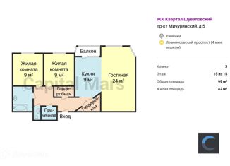 Сдается в аренду 3-комнатная квартира, 94 м2, Мичуринский проспект, 7