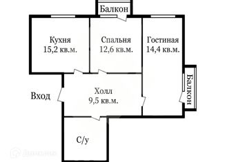 Общая площадь: 52 м2