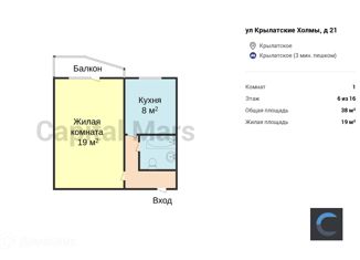 1-комнатная квартира в аренду, 38 м2, улица Крылатские Холмы, 21