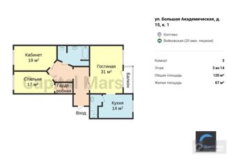 Сдается трехкомнатная квартира, 120 м2, Большая Академическая улица, 15к1