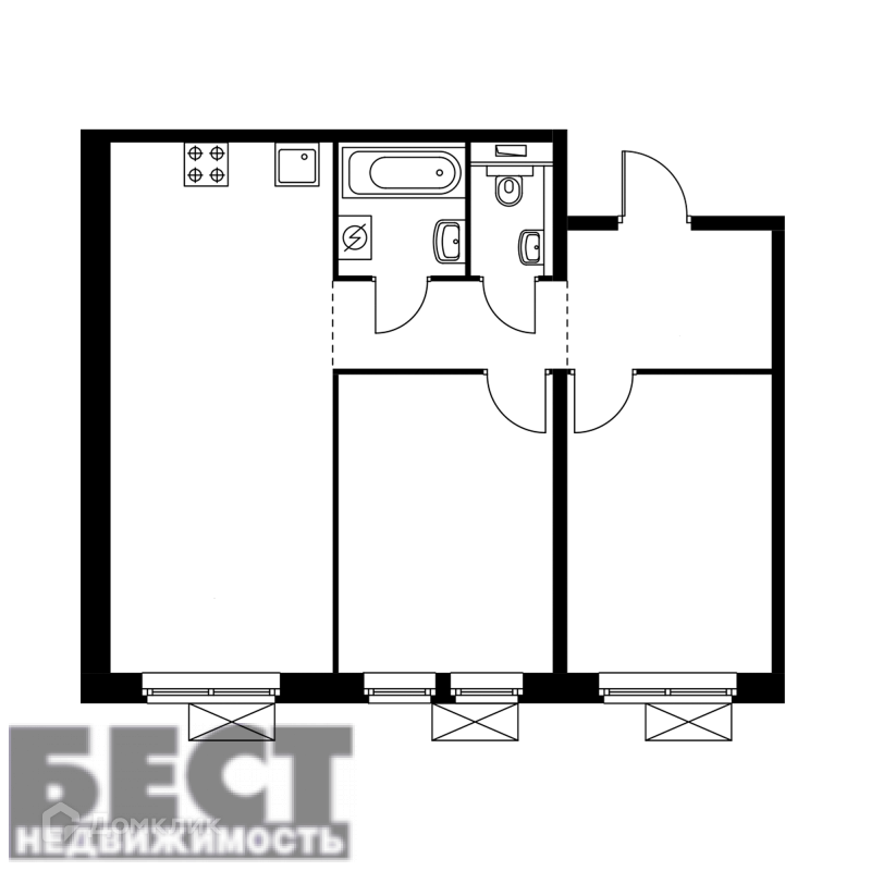 Жилая площадь 45.9 м2