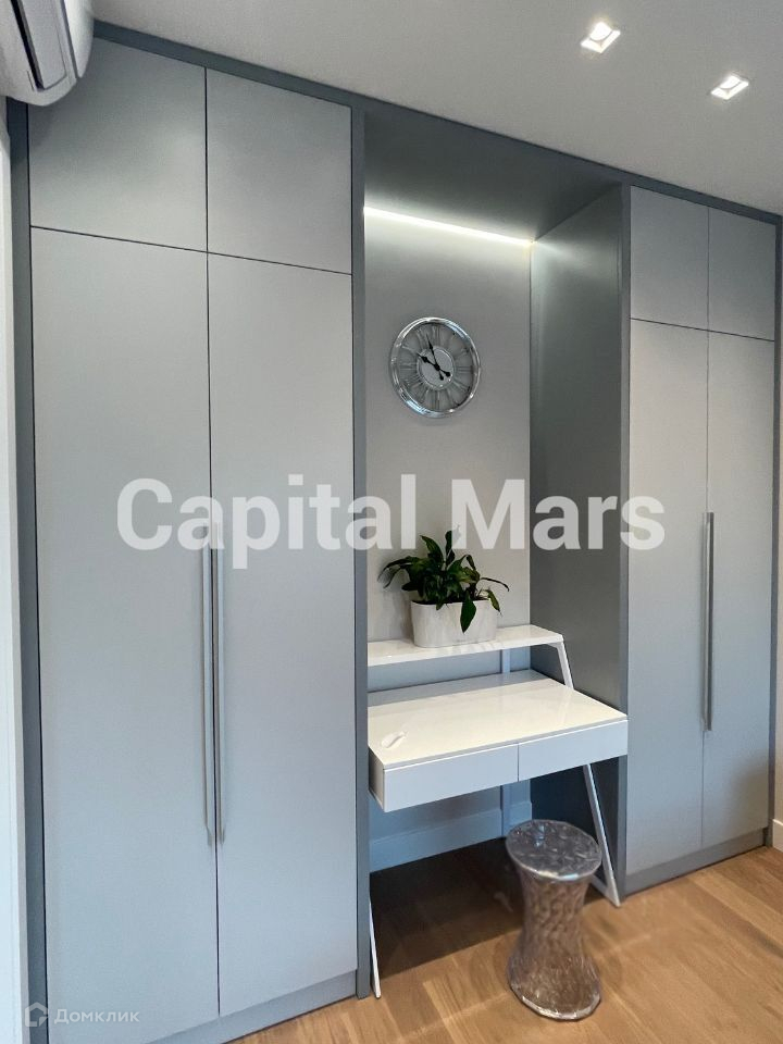 Предлагается однокомнатная квартира в ЖК "Береговой". Жилая комната располагает двуспальной кроватью и встраиваемой зоной хранения. Кухня оснащена лаконичным гарнитуром и комплектом бытовой техники, включая духовую печь. Комфортный микроклимат поддерживает сплит-система. Из окон открывается живописный вид на Москва-реку.