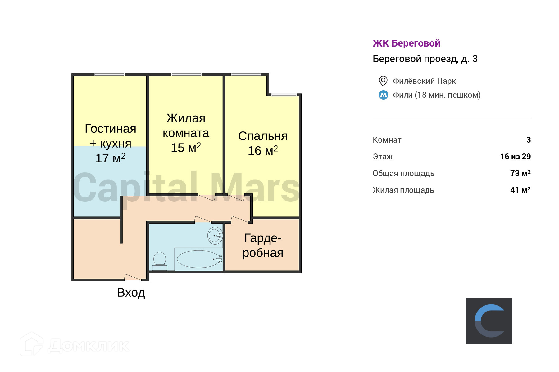Общая площадь 73 м2