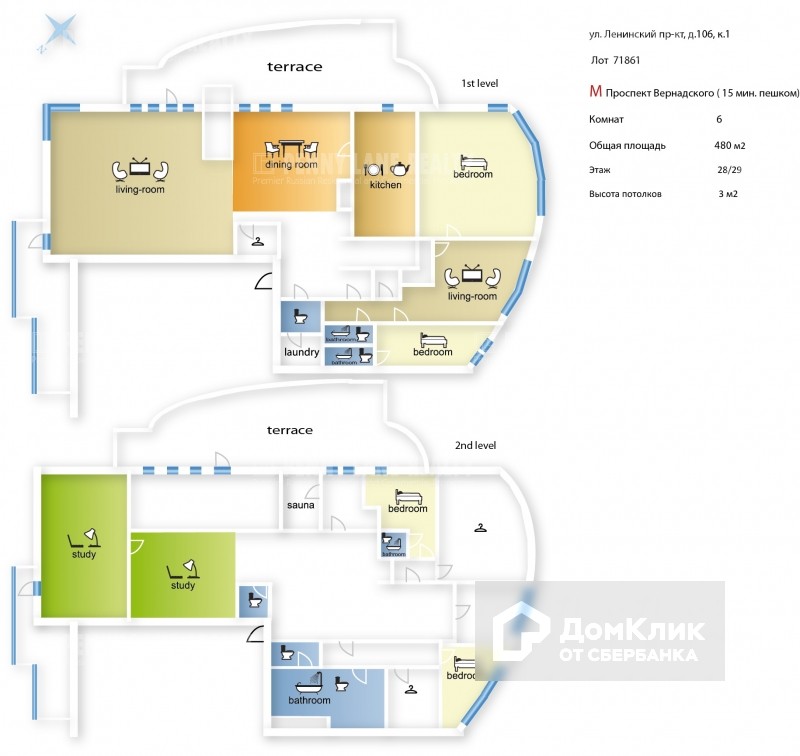 Многокомнатная квартира, 480 м2, в аренду на длительный срок в Москве, Ленинский проспект, 106к1