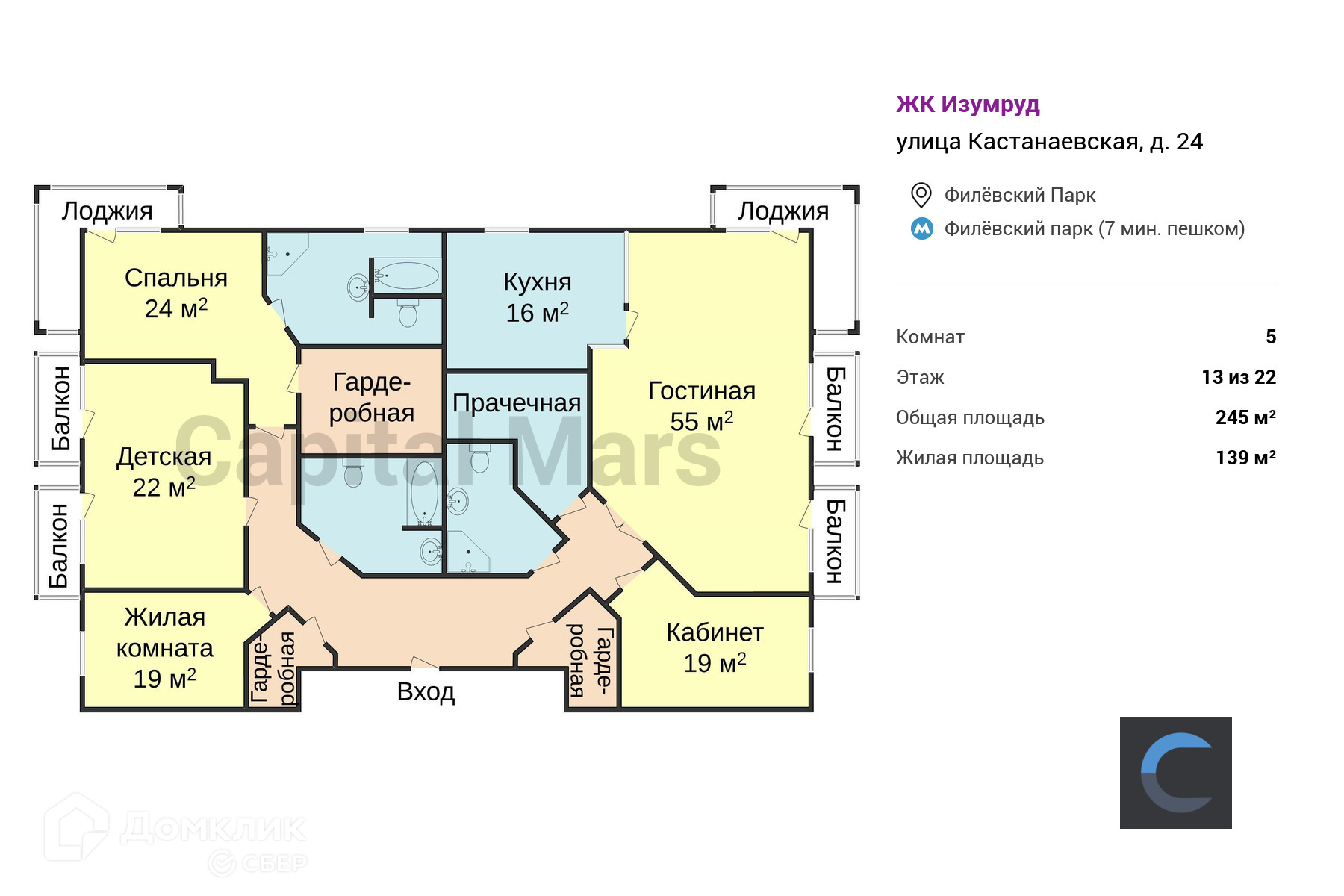 Жилая площадь 139 м2
