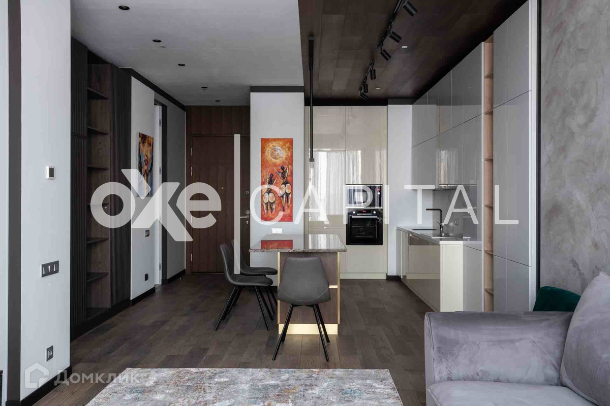 Большая кухня-гостиная, к спальне присоединилась удобная гардеробная. Элитные отделочные материалы, паркетная доска, отделка стен и мебели из натурального шпона. Ремонт выполнен в строгом соответствии с дизайн проектом.