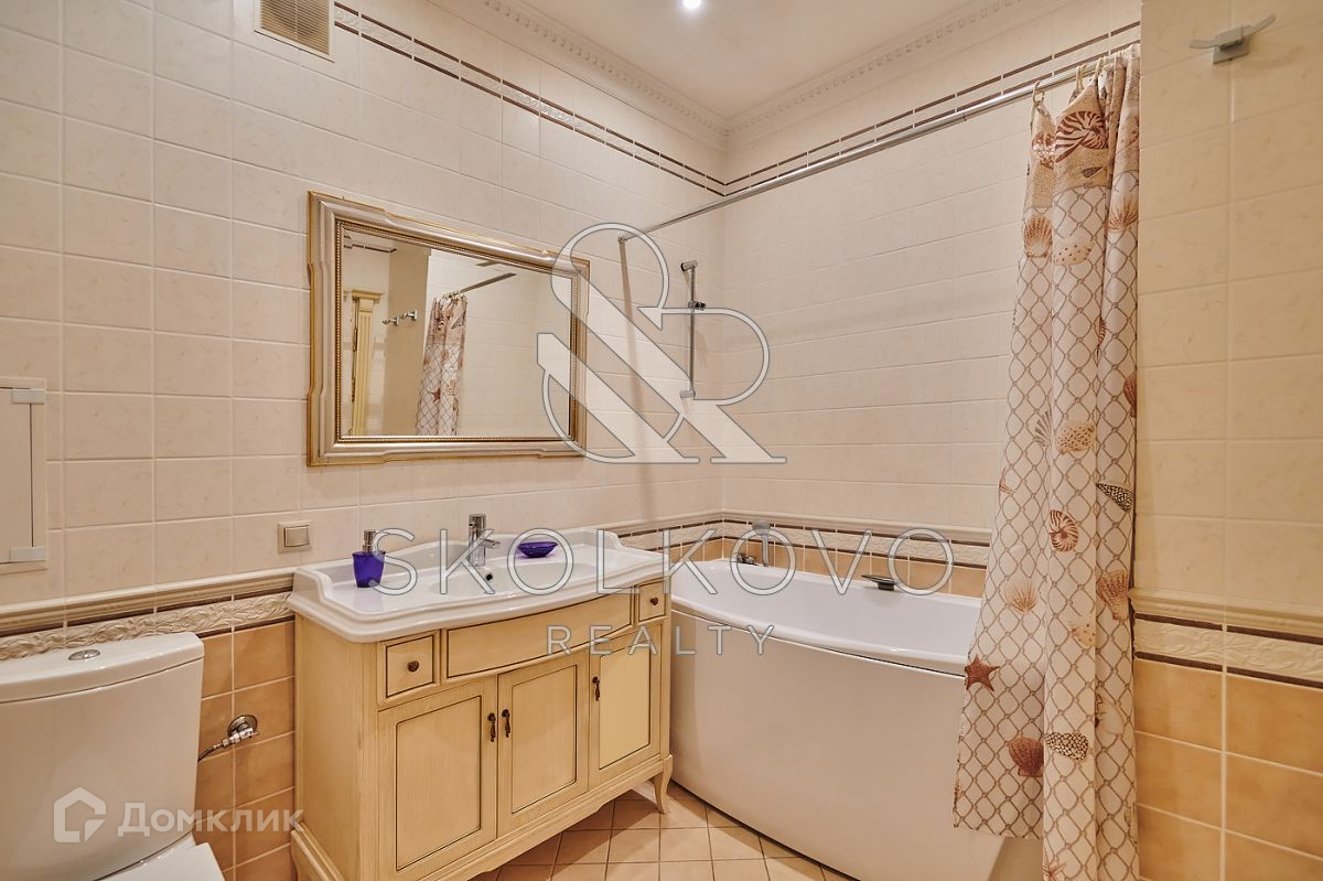 Планировочное решение: гостиная, кухня, 4 спальни, 3 ванные комнаты, гардеробная комната, гостевой санузел, комната свободного назначения, которую можно использовать как кабинет. Квартира оснащена необходимой мебелью и бытовой техникой.