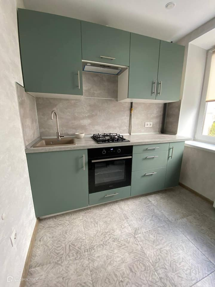 Кухня: новая газовая варочная панель и встроенный духовой шкаф Gorenje, есть чайник, телевизор, холодильник, обеденный стол табуретки, посуда… в общем, всё необходимое.