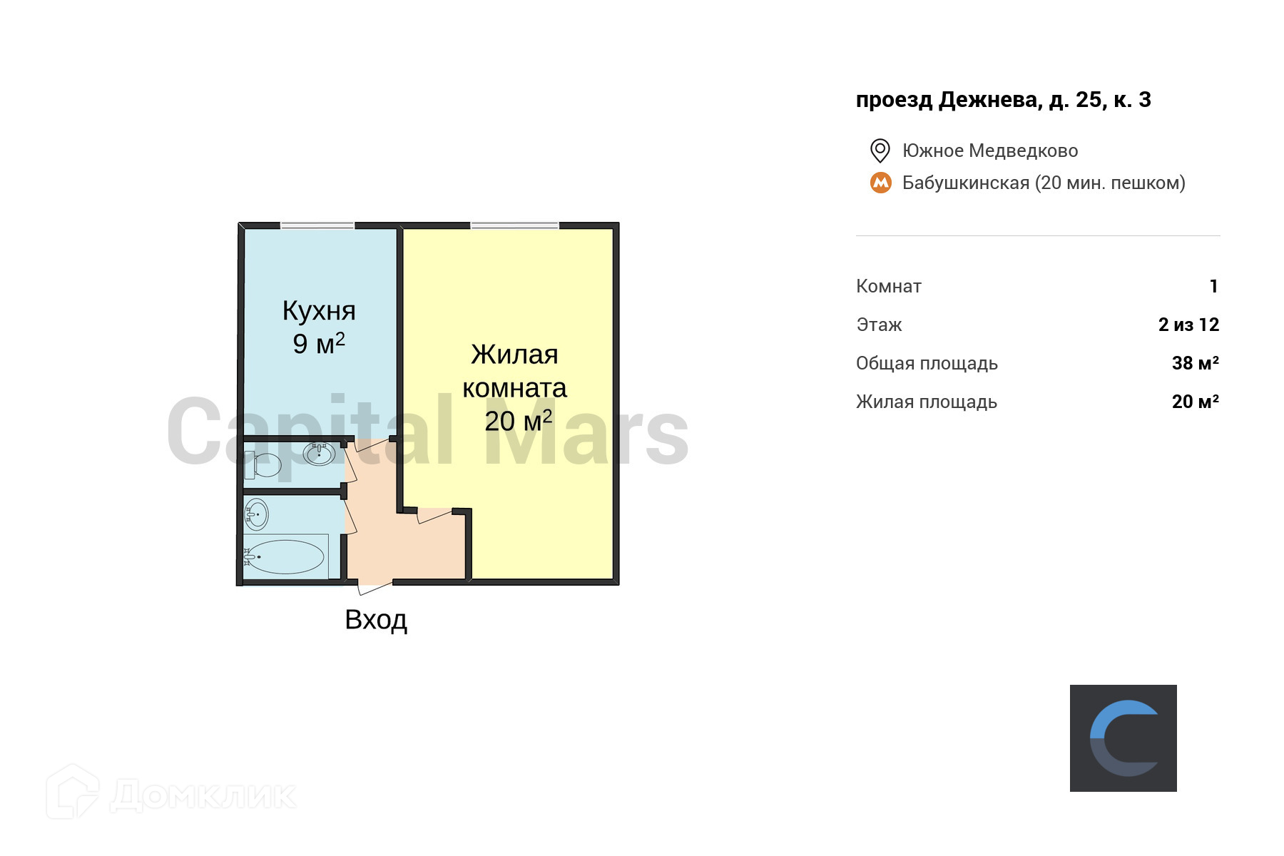 Общая площадь 38 м2