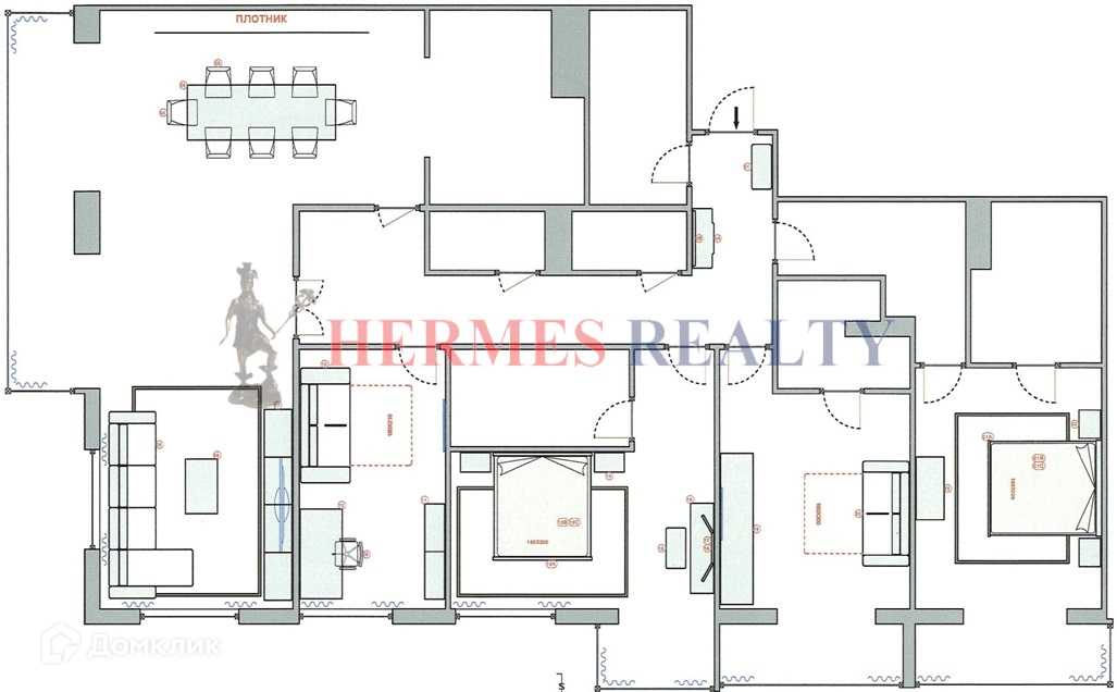 Семью можно с комфортом разместить в трех спальнях, для главы семьи-кабинет, для совместного время-препровождения - гостиная плавно переходящая в столовую, а столовая гармонирует с кухней.