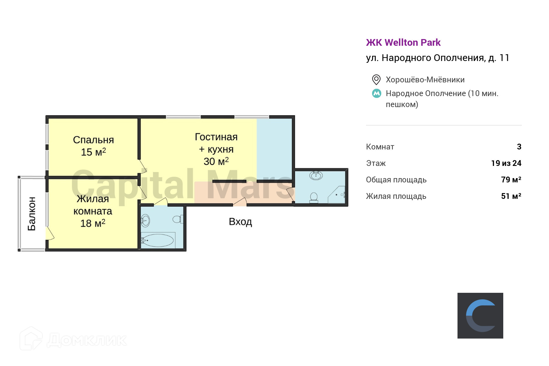 Общая площадь 79 м2