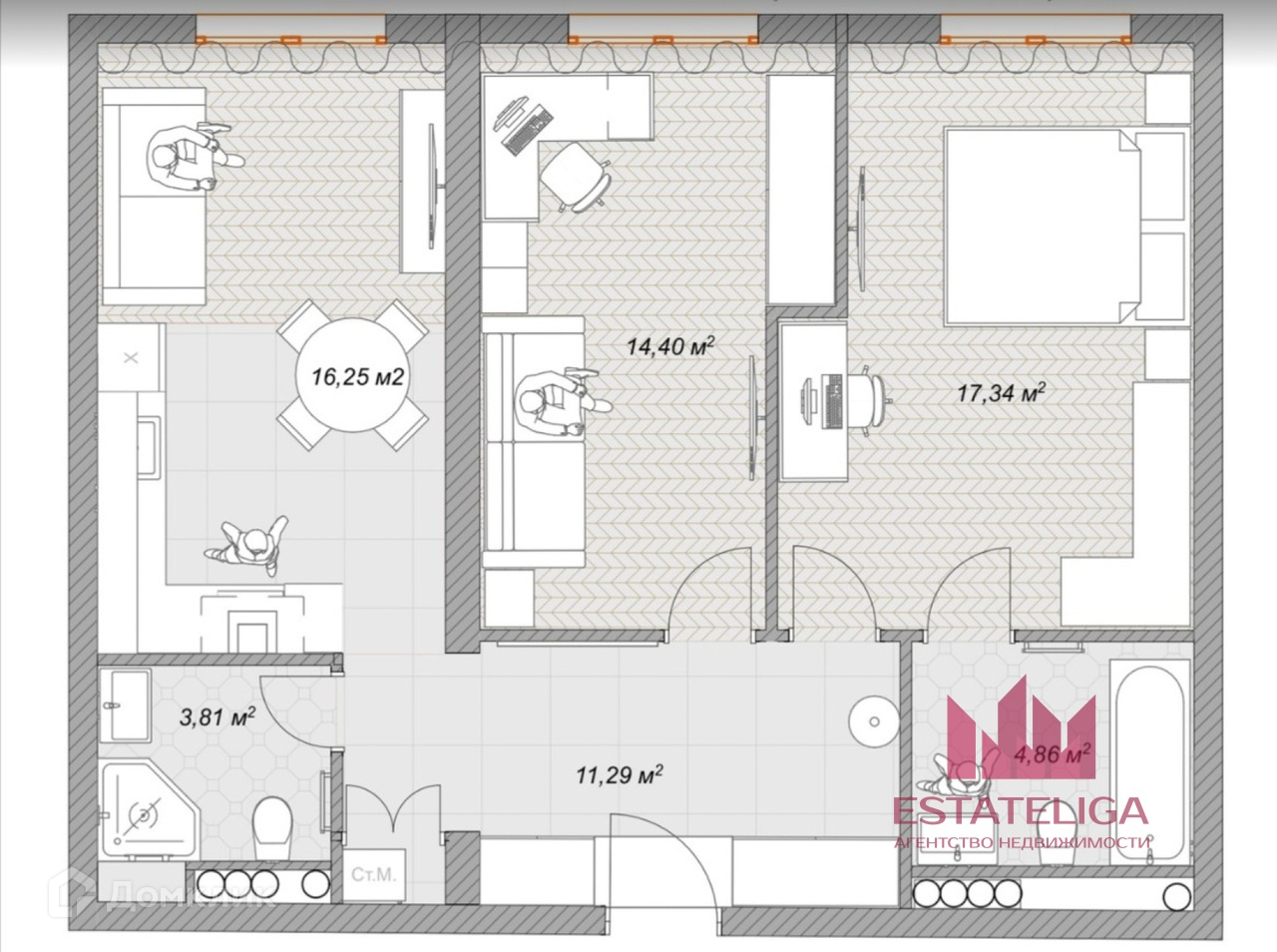 Общая площадь 68 м2