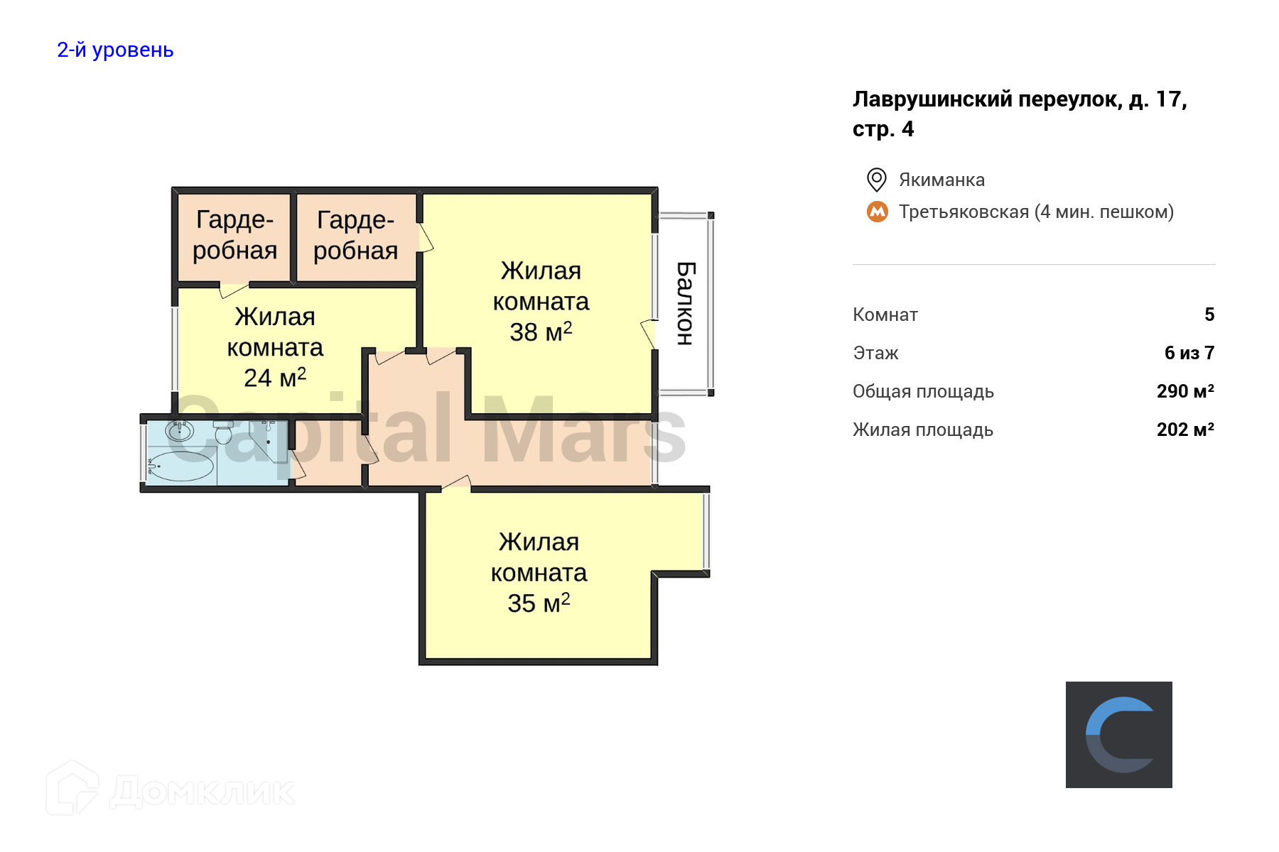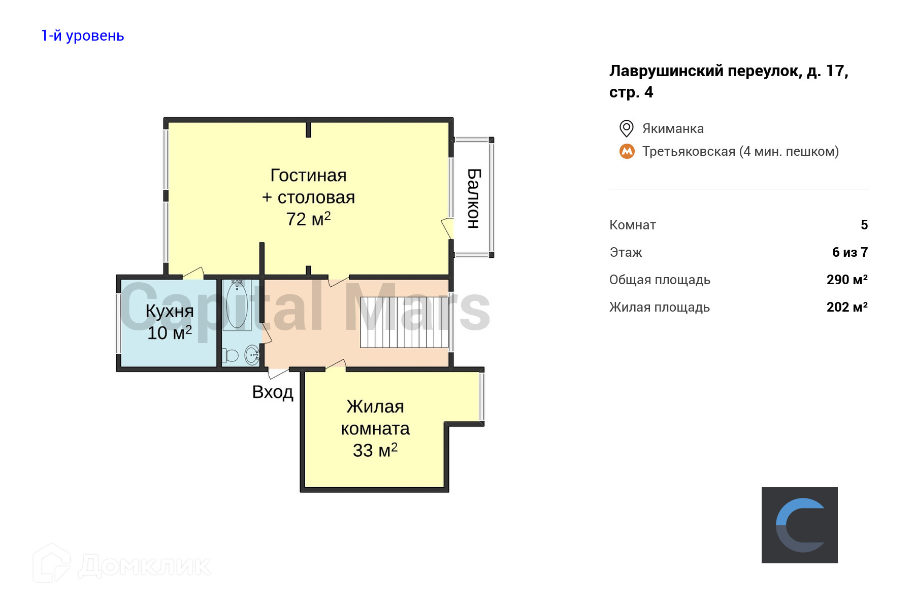 5-комнатная квартира, 284 м2, в аренду на длительный срок в Москве, Лаврушинский переулок, 17с4