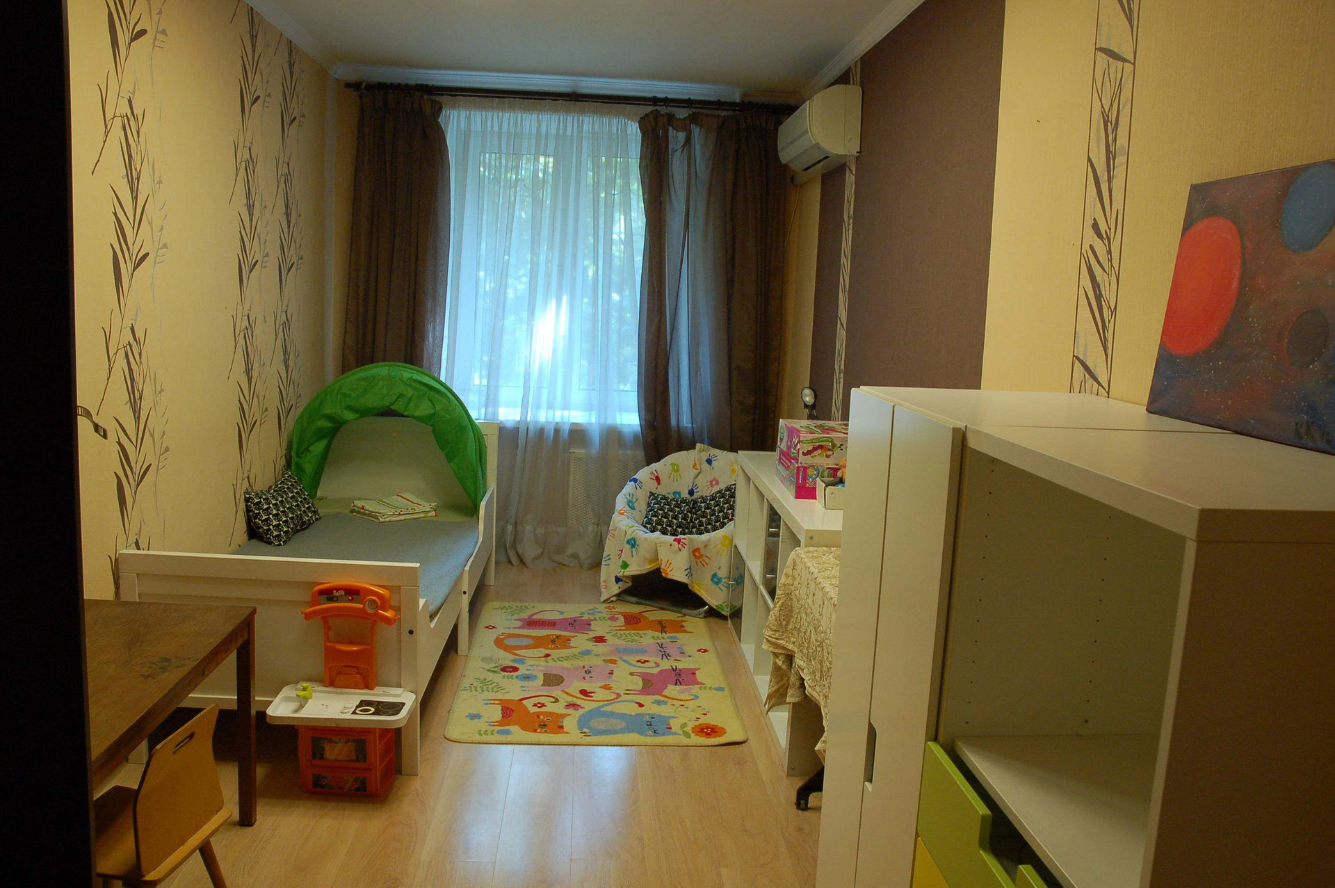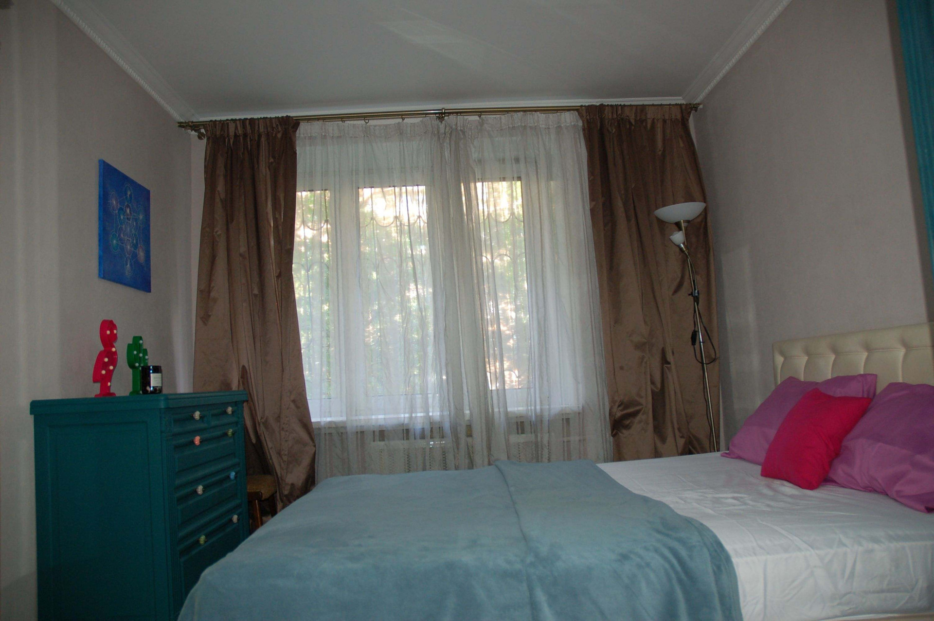 Уютная квартира, комфортная для проживания семьи с ребенком. Полностью оборудована для жизни, сдаётся ы средне рок от 1 до 6 месяцев. Взрослая спальня, детская комната, большая гостиная с раскладным диваном