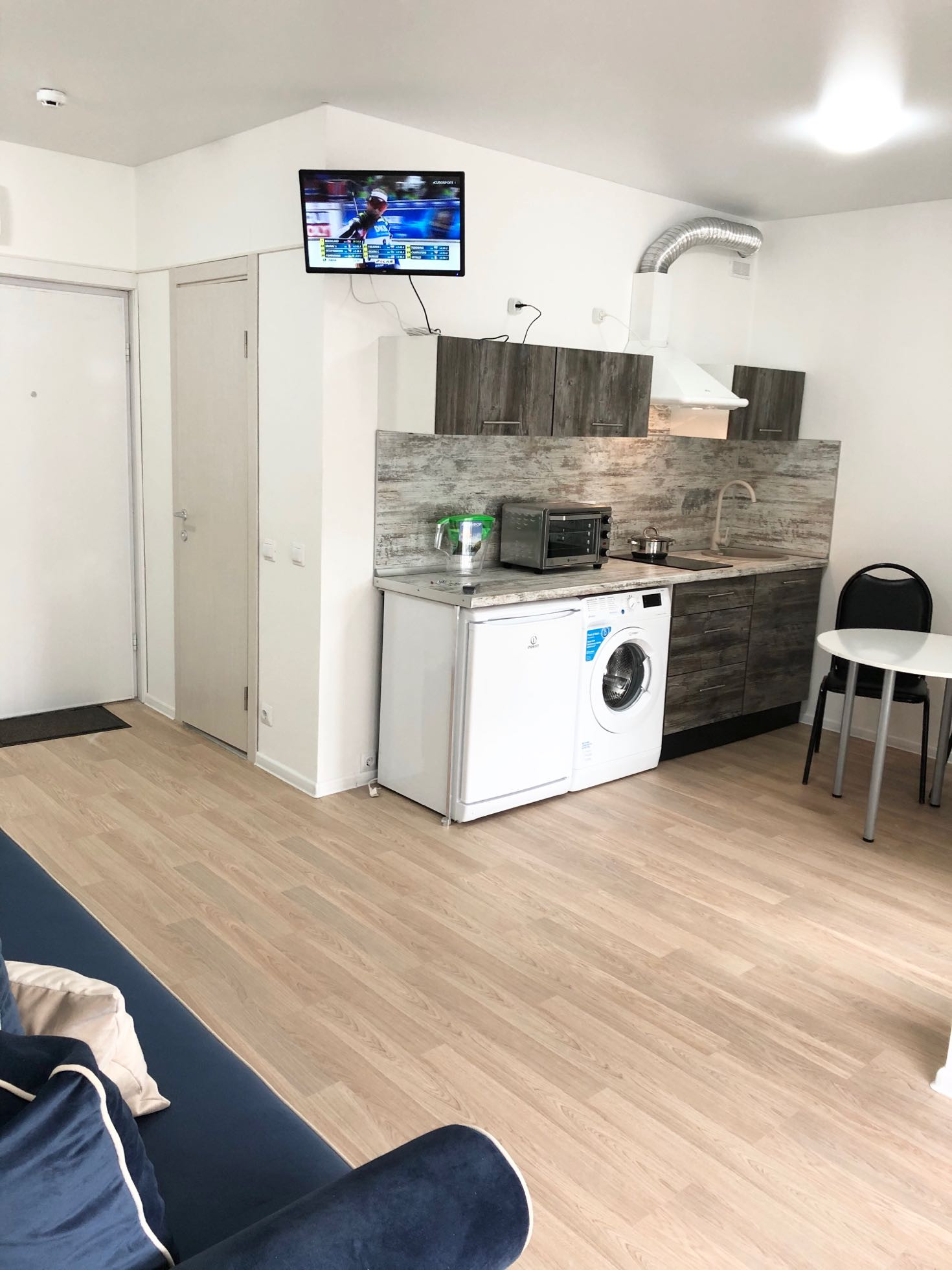 Стиральная машина автомат, холодильник, телевизор, электроплита стеклокерамика, духовой шкаф. Вся техника импортная. Утюг, гладильная доска.