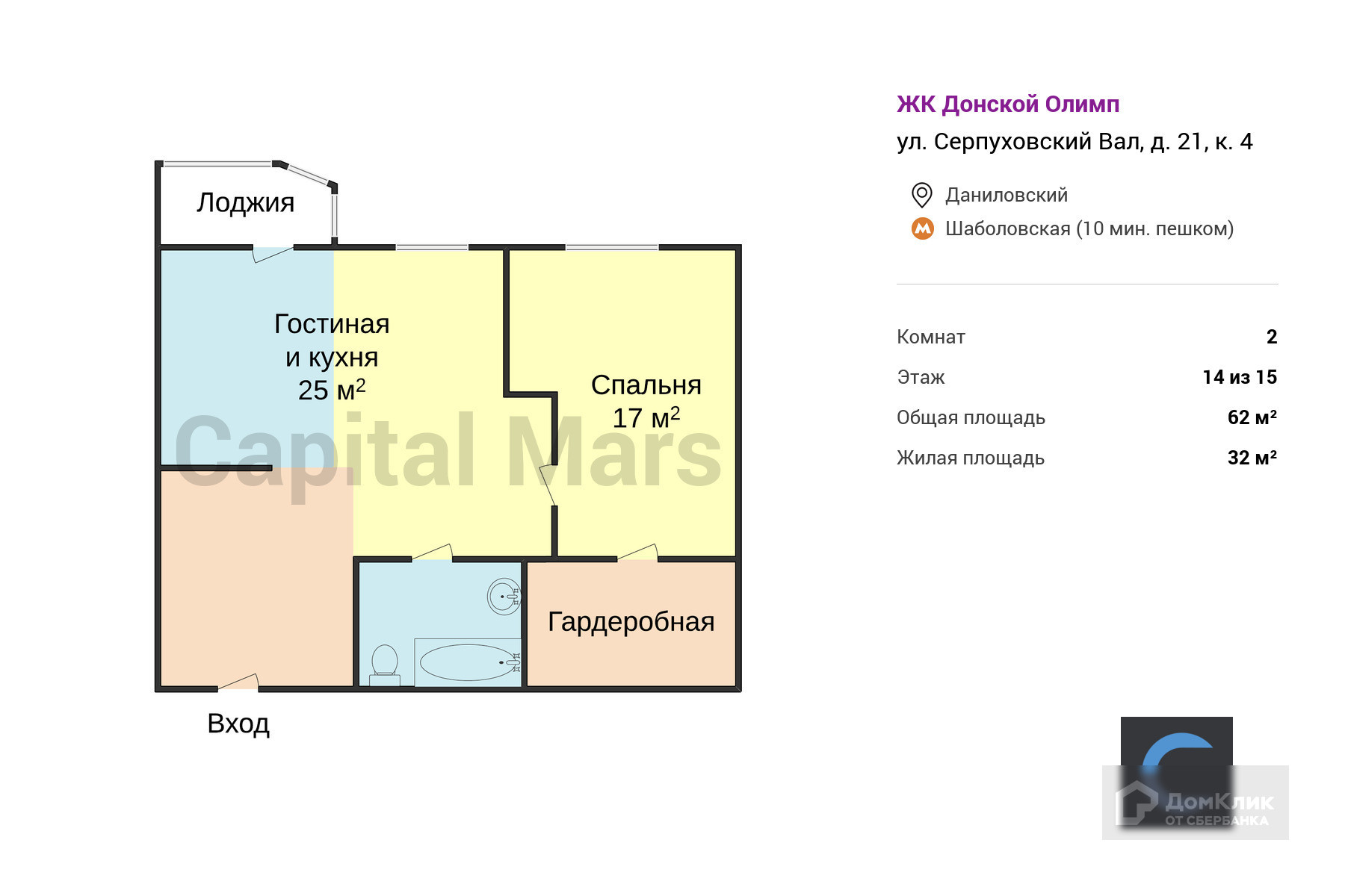 Общая площадь 62 м2