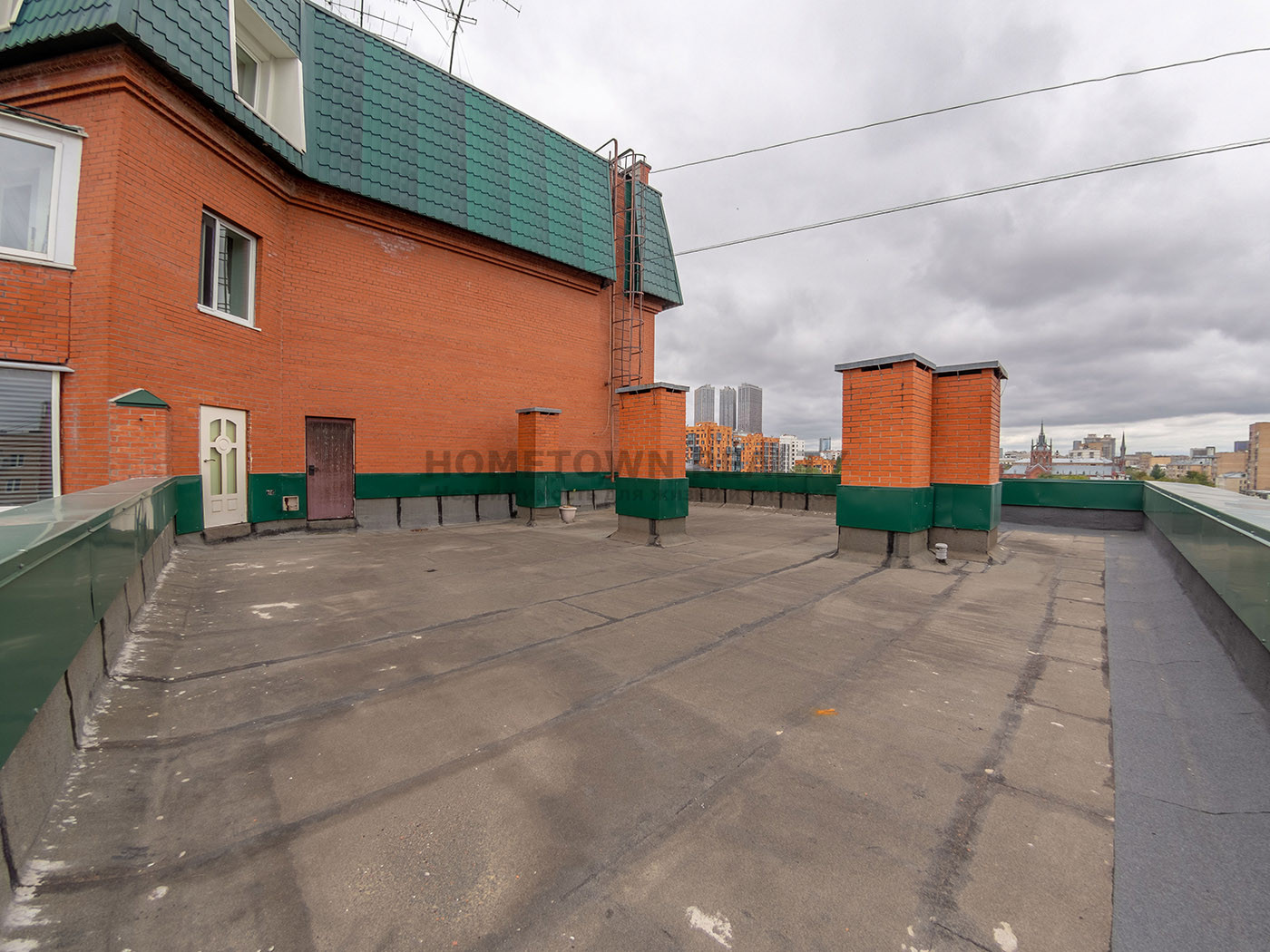 Большая терраса площадью около 100 м2 с шикарным видом на 3 стороны.