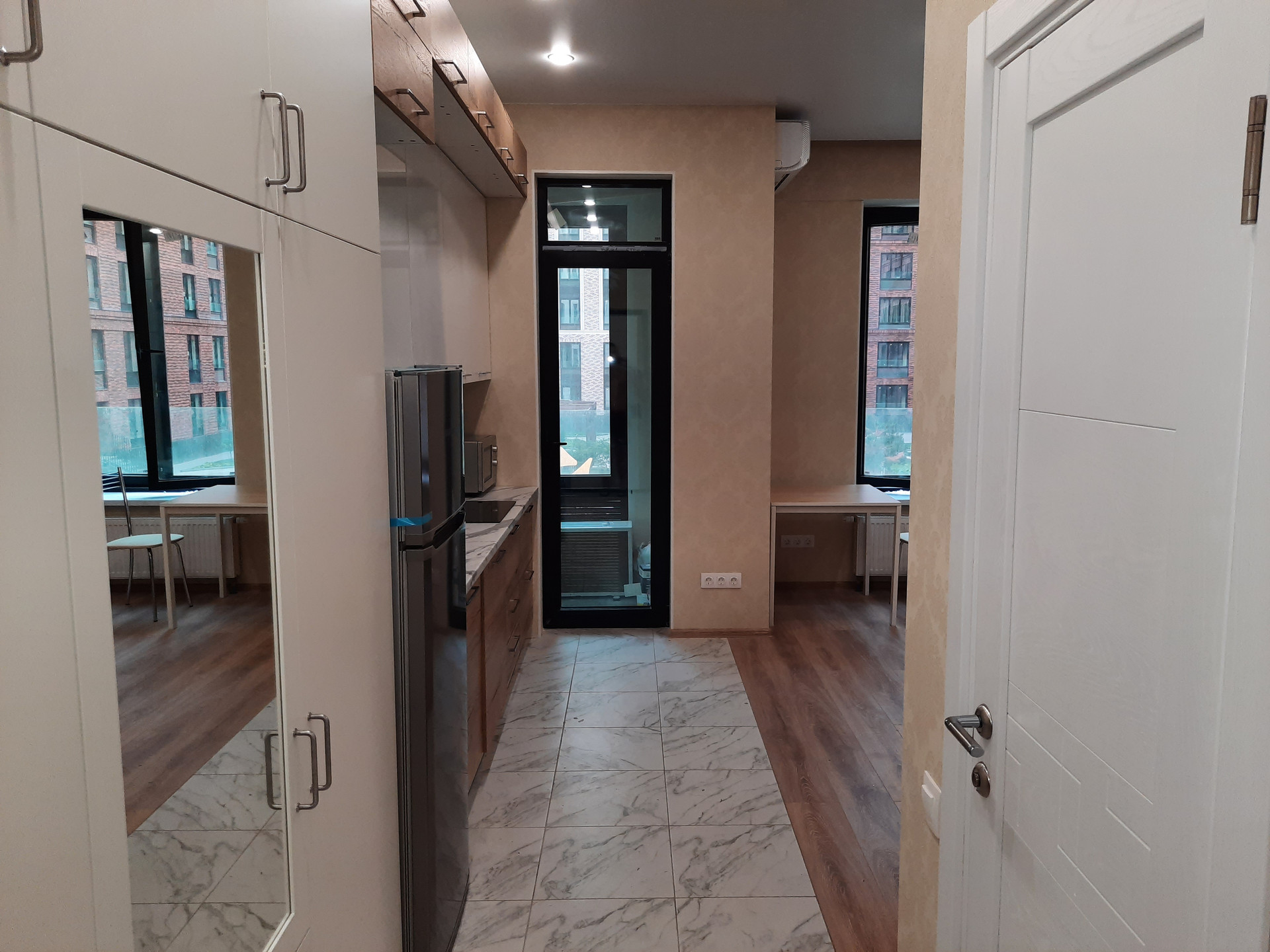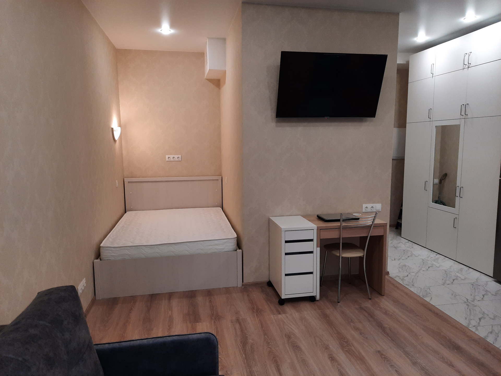 Студия сдается на длительный срок. Коммунальные платежи включены в стоимость, кроме счетчиков. Интернет есть, оплачивает наниматель по желанию. Возможность арендовать для машины место в подземном паркинге.