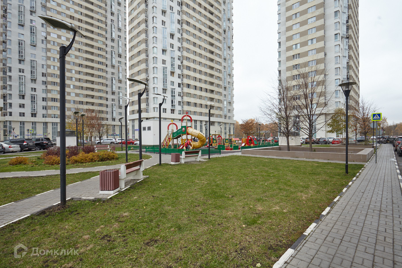 Территория ЖК закрытая, находится под видеонаблюдением, есть подземный паркинг и наземная парковка. Благоустройство двора: детская игровая площадка, спортивная площадка, прогулочные зоны, детский сад. английский клуб, кафе, булочные, салоны красоты, свой фитнес-клуб и др.