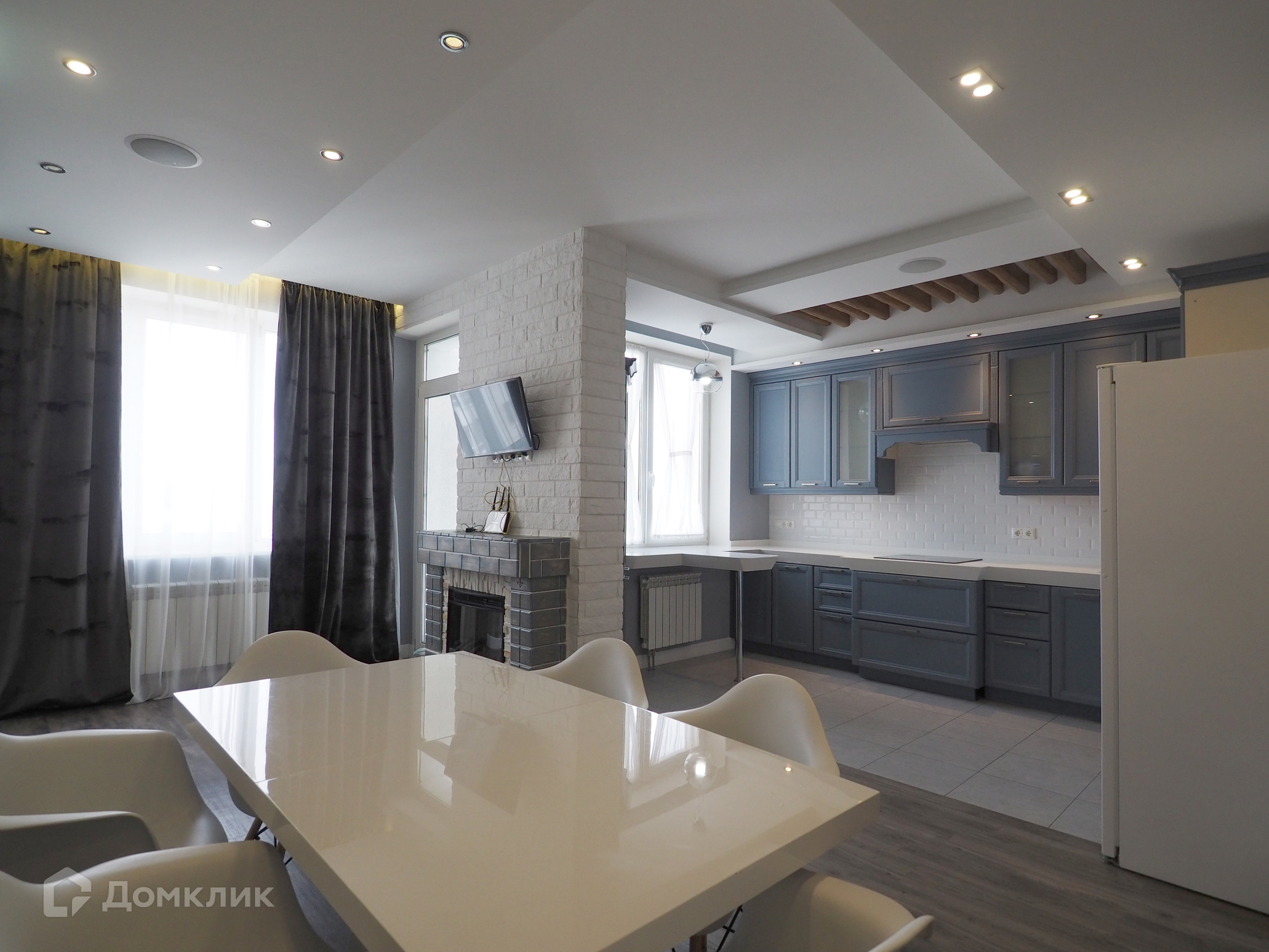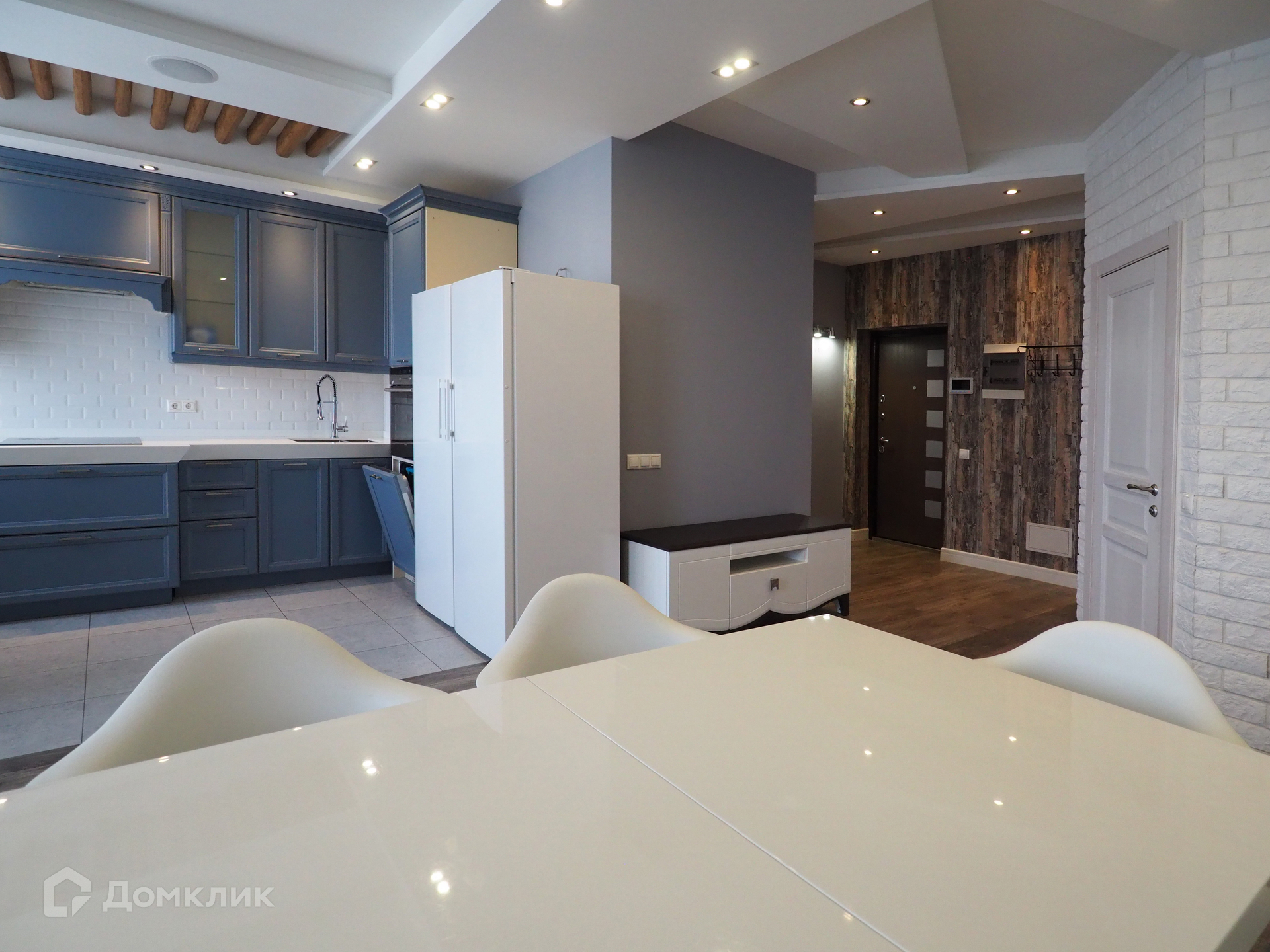Общая площадь 104 кв.м., гостиная совмещена с кухней (20 кв.м.)