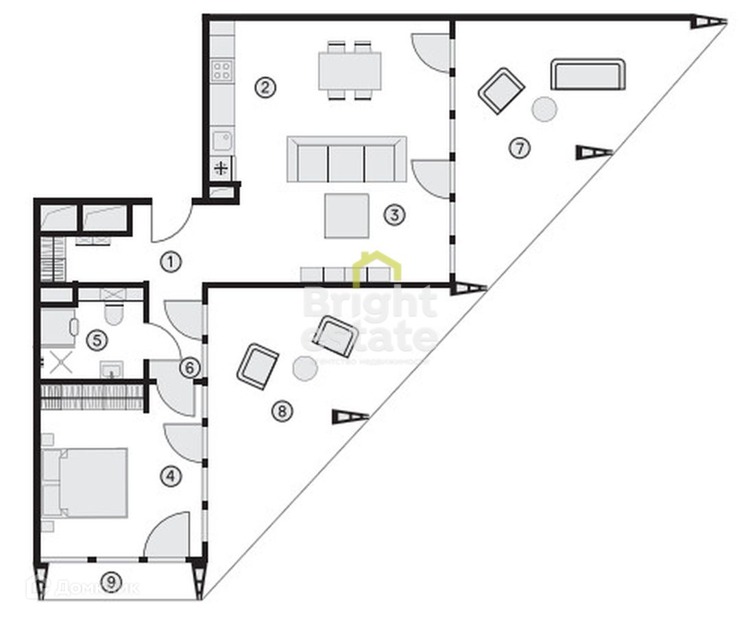 Планировка: прихожая, кухня-гостиная, мастер-спальня с с/у, терраса.