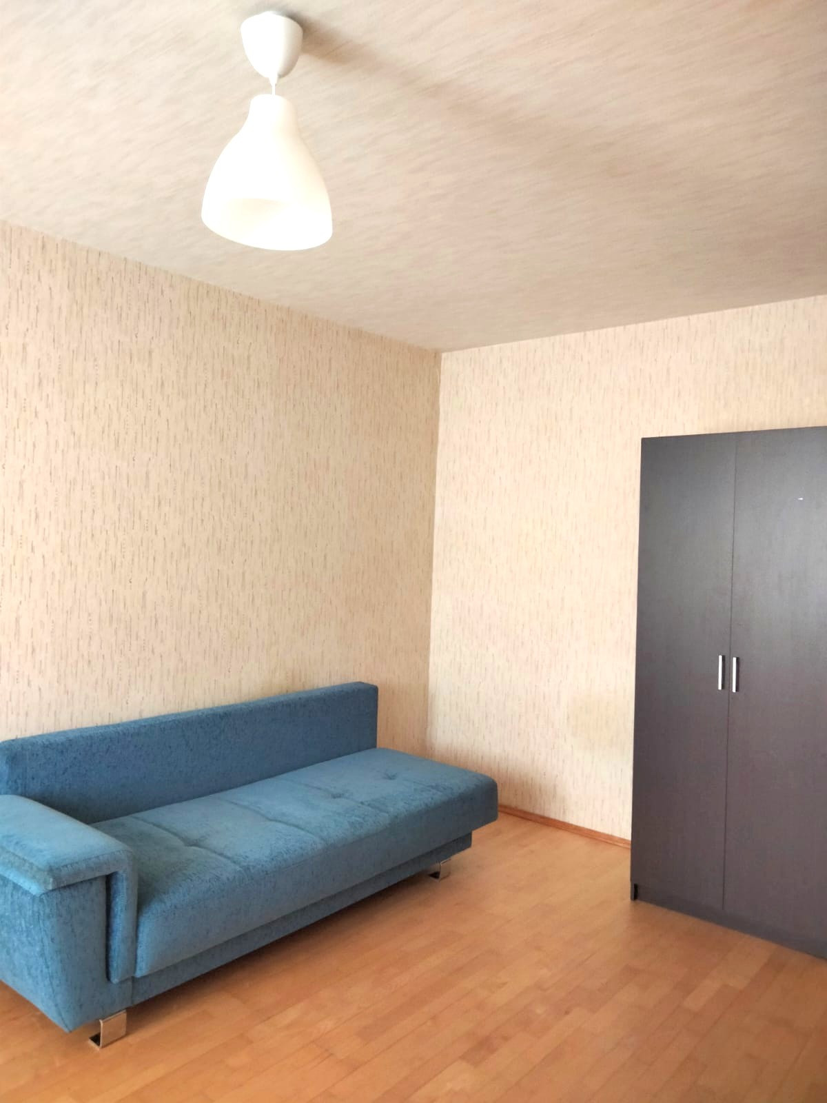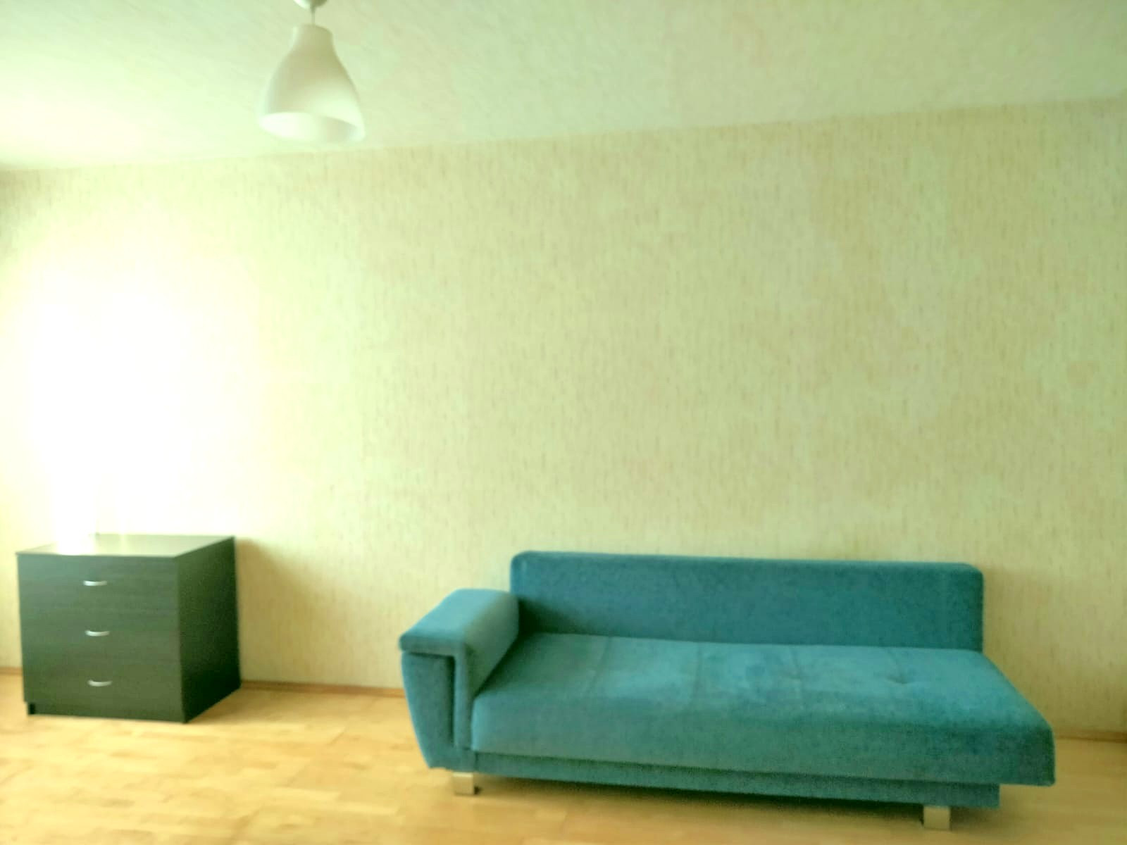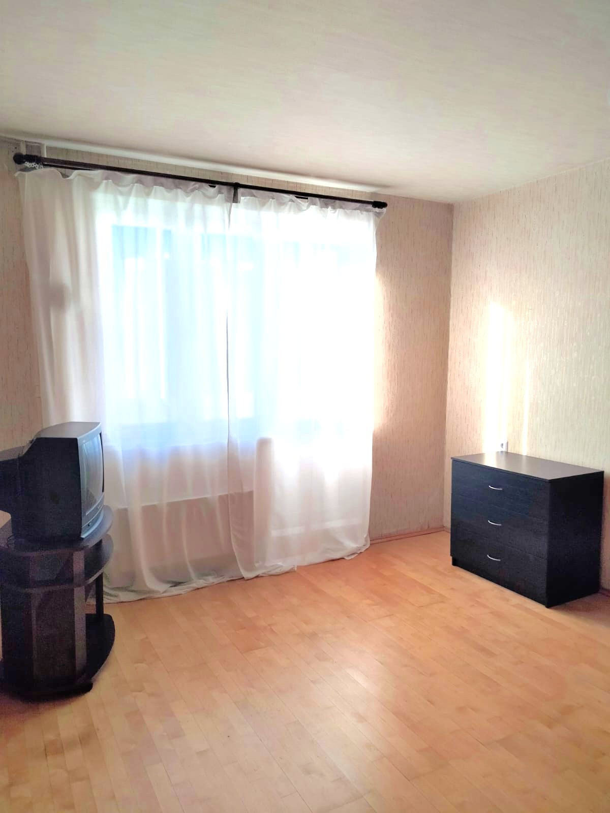 В комнате раздвижной диван. Шкаф, тумба под ТВ, комод.