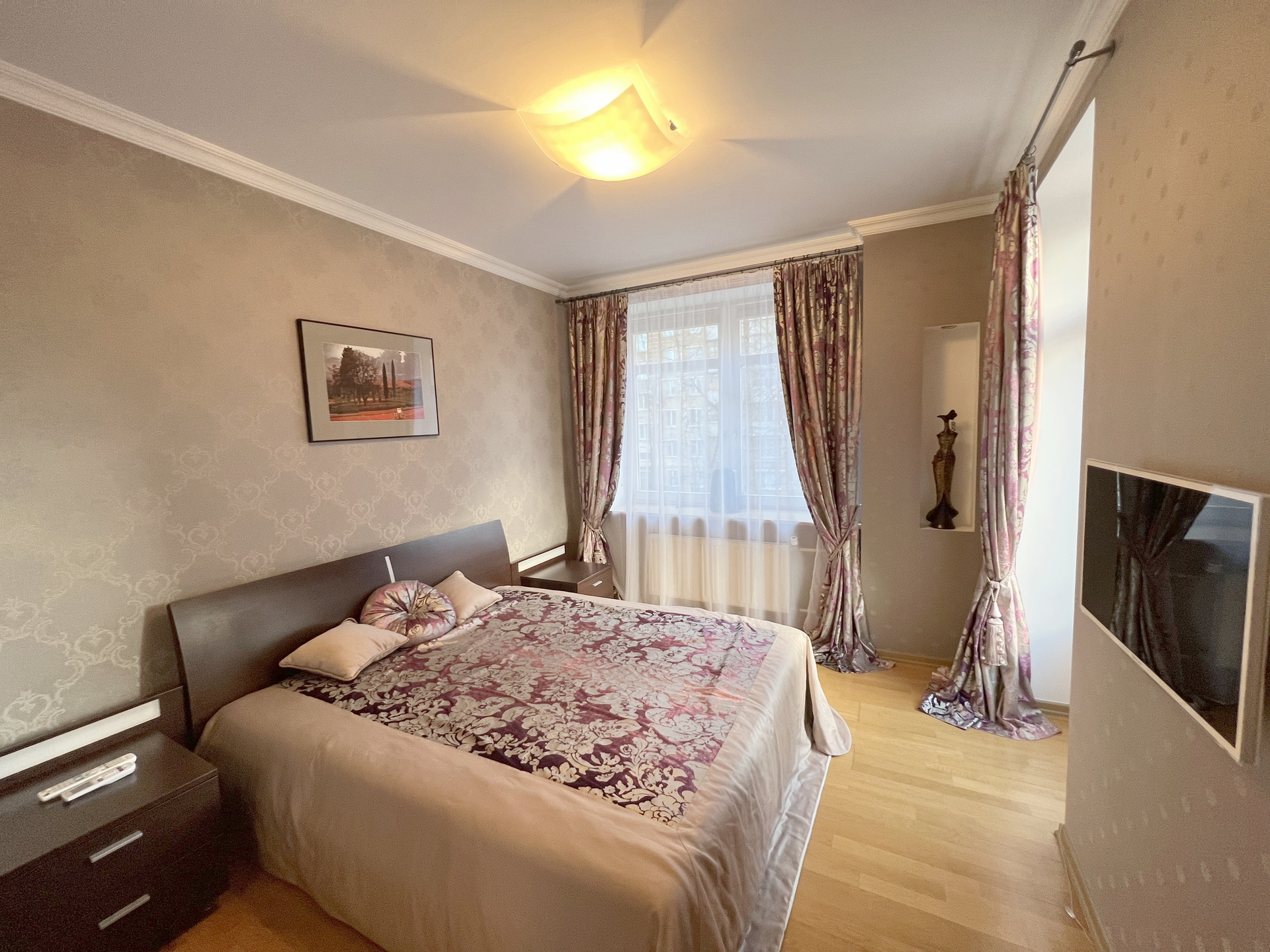 Сдается 3х комнатная квартира после свежего косметического ремонта в огороженном со шлагбаумом монолитно-кирпичном доме, со своей территорией и подземным паркингом . На полу паркет и керамогранит. Встроенная кухня с обеденным столом и стульями, со всей необходимой бытовой техникой: холодильник Liebherr, Варочная панель Bosch, духовой шкаф Bosch, вытяжка Bosch,микроволновая встроенная печь Bosch, посудомоечная машина Bosch, Чайник Siemens, новая сплит система кондиционирования воздуха. Детская: кроватка, небольшая стенка с рабочим столом, встроенный шкаф. Спальня: двухспальная кровать с прикроватными тумбами, встроенный шкаф-купе, ТВ, увлажнитель воздуха, кондиционер. Гостиная, центр всей квартиры из которой мы попадаем во все комнаты, кухню и санузел с коридором. Удобный, вместительный диван, тумба под ТВ, кондиционер. В коридоре 2 шкафа купе, один из которых зеркальный, удобная банкетка во входной группе. С/у совмещенный, душевая кабина и ванна, стиральная машина, водонагреватель . Грузовой и пассажирский лифты, очень чисто на этаже и в подъезде, консьерж, шлагбаум. Есть возможность аренды машиноместа в подземном отапливаемом паркинге, а так можно заезжать на закрытую территорию дома и оставлять авто внутри. Оперативные показы, ключи на руках. Очень приятные владельцы.