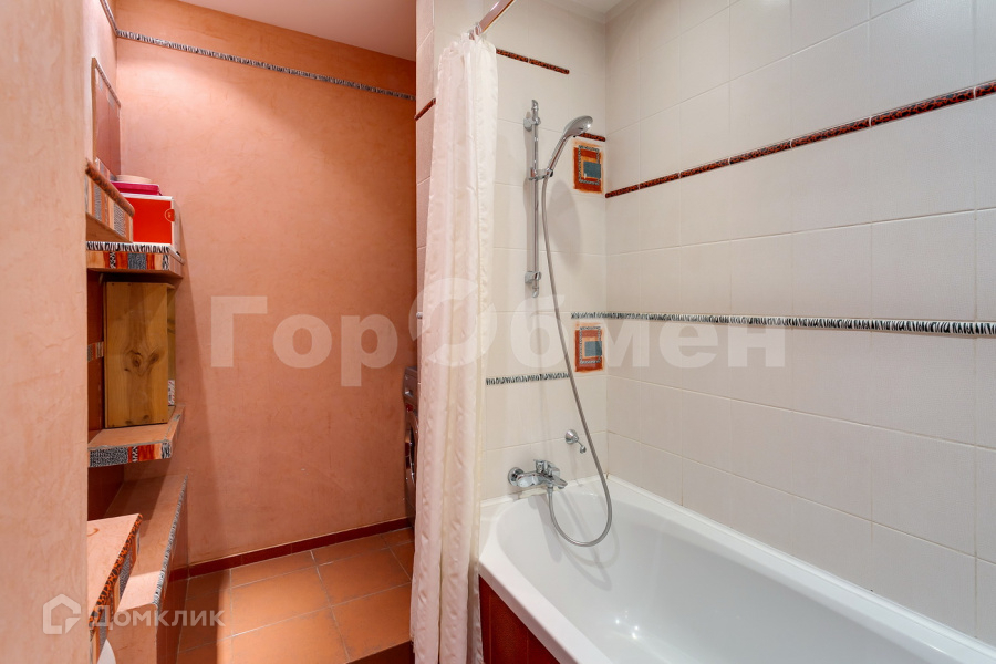 В совмещенной ванной комнате установлена ванная с душевой системой.