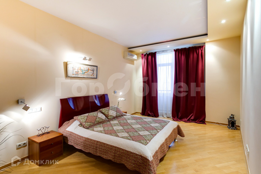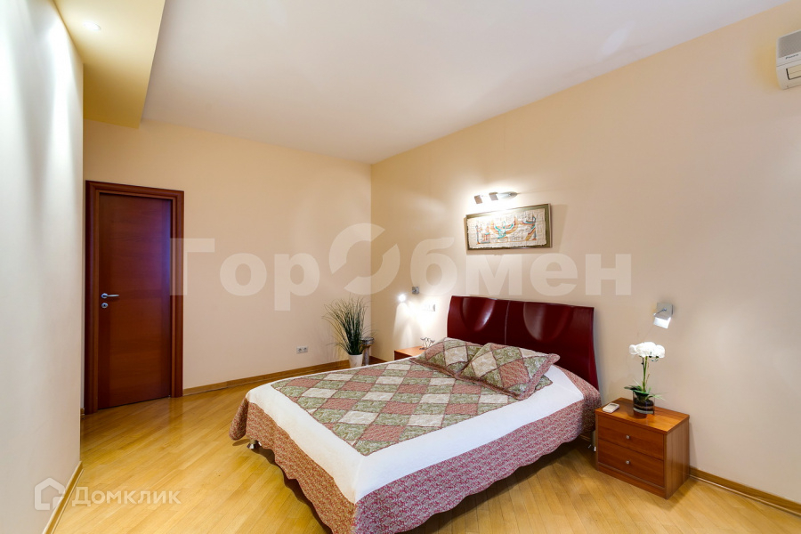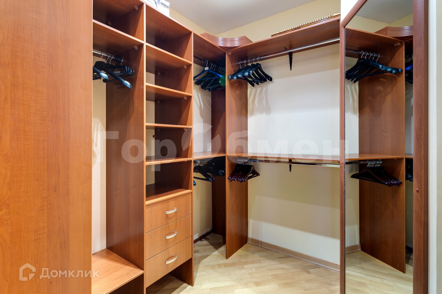 Кровать с матрасом, а также тумбы и шкафы для хранения вещей. Но есть большая гардеробная комната, где удобно разместить все вещи и обувь.