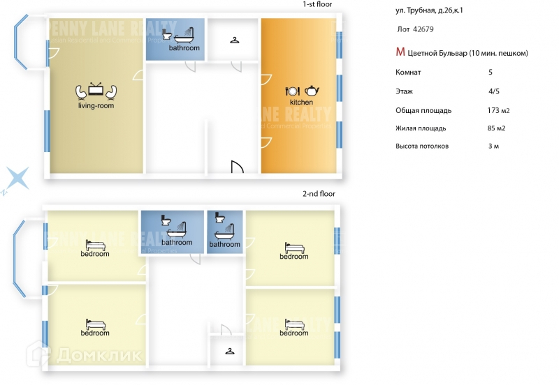 5-комнатная квартира, 173 м2, в аренду на длительный срок в Москве, Трубная улица, 26к1
