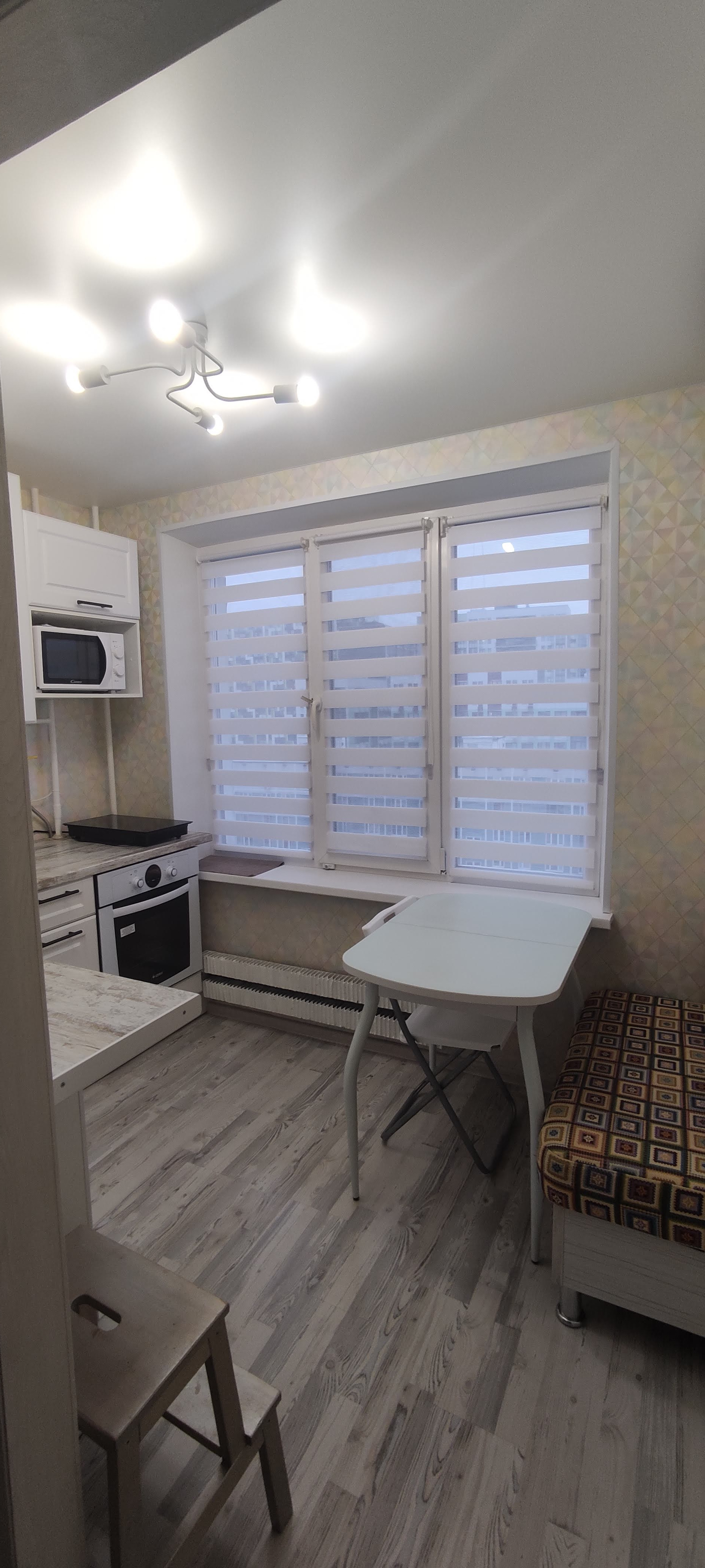 Впервые сдается на длительный срок очень уютная, светлая, теплая и практичная двухкомнатная квартира общей площадью 45 кв м. Две комнаты: большая 19 кв.м. и маленькая 8 кв. м., совмещенный санузел. Есть застекленный удобный чистый балкон, окна во двор. В квартире имеется все необходимое для комфортного проживания: двухкамерный холодильник, новая СВЧ, варочная индукционная панель, современный газовый духовой шкаф, белый обеденный стол (раскладывается) посудомоечная машина, 2 сплит-системы (кухня и большая комната, стиральная машина, утюг, интернет Wi-Fi, двухместная кровать с ортопедическим матрасом, раскладной диван (маленькая комната; на фото его нет), чистая сантехника, ванная комната полностью в плитке, встроенные шкафы в маленькой комнате и прихожей, антресоли. Она ПВХ с москитными сетками и замками от детей. Очень много мест для хранения, рабочая зона. Идеально для семьи, рассмотрим разный состав.