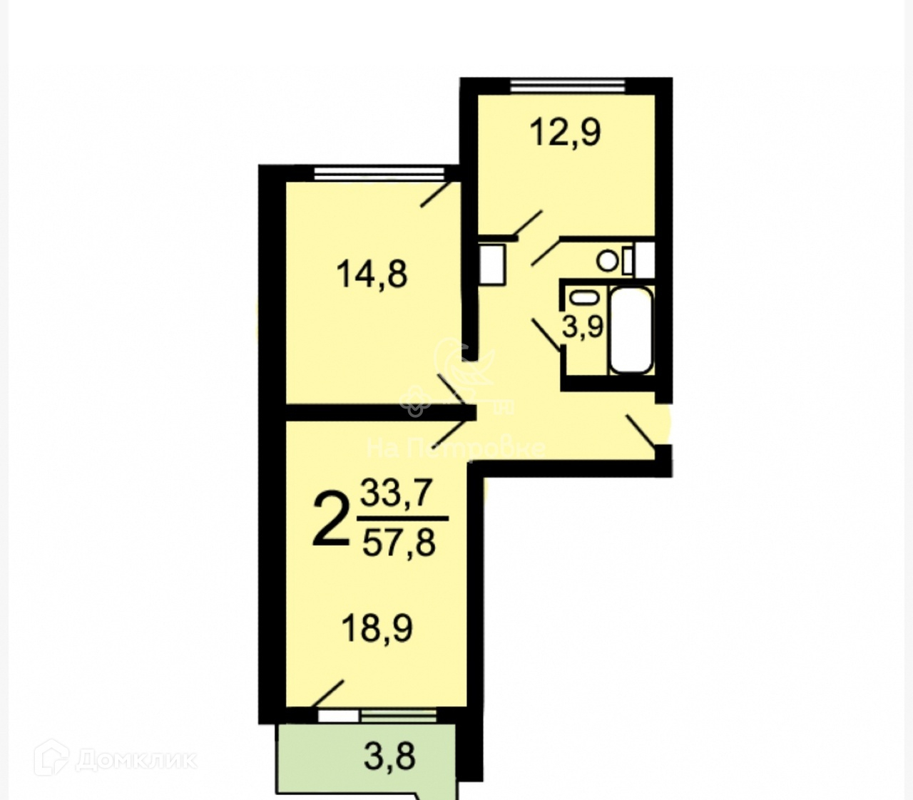 Жилая площадь 33.7 м2