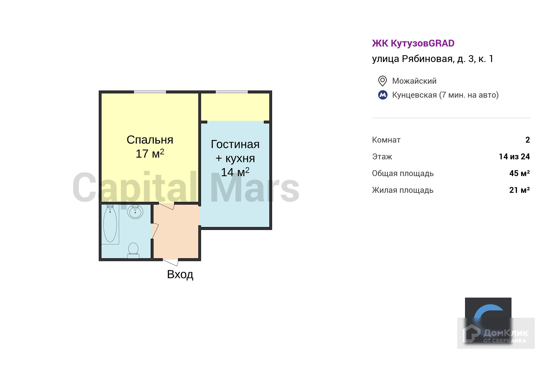 Общая площадь 45 м2