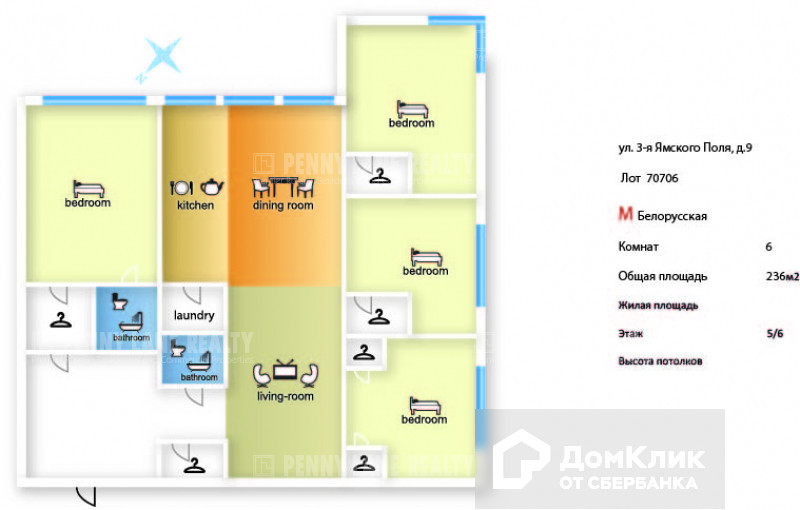 5-комнатная квартира, 236 м2, в аренду на длительный срок в Москве, 3-я улица Ямского Поля, 9