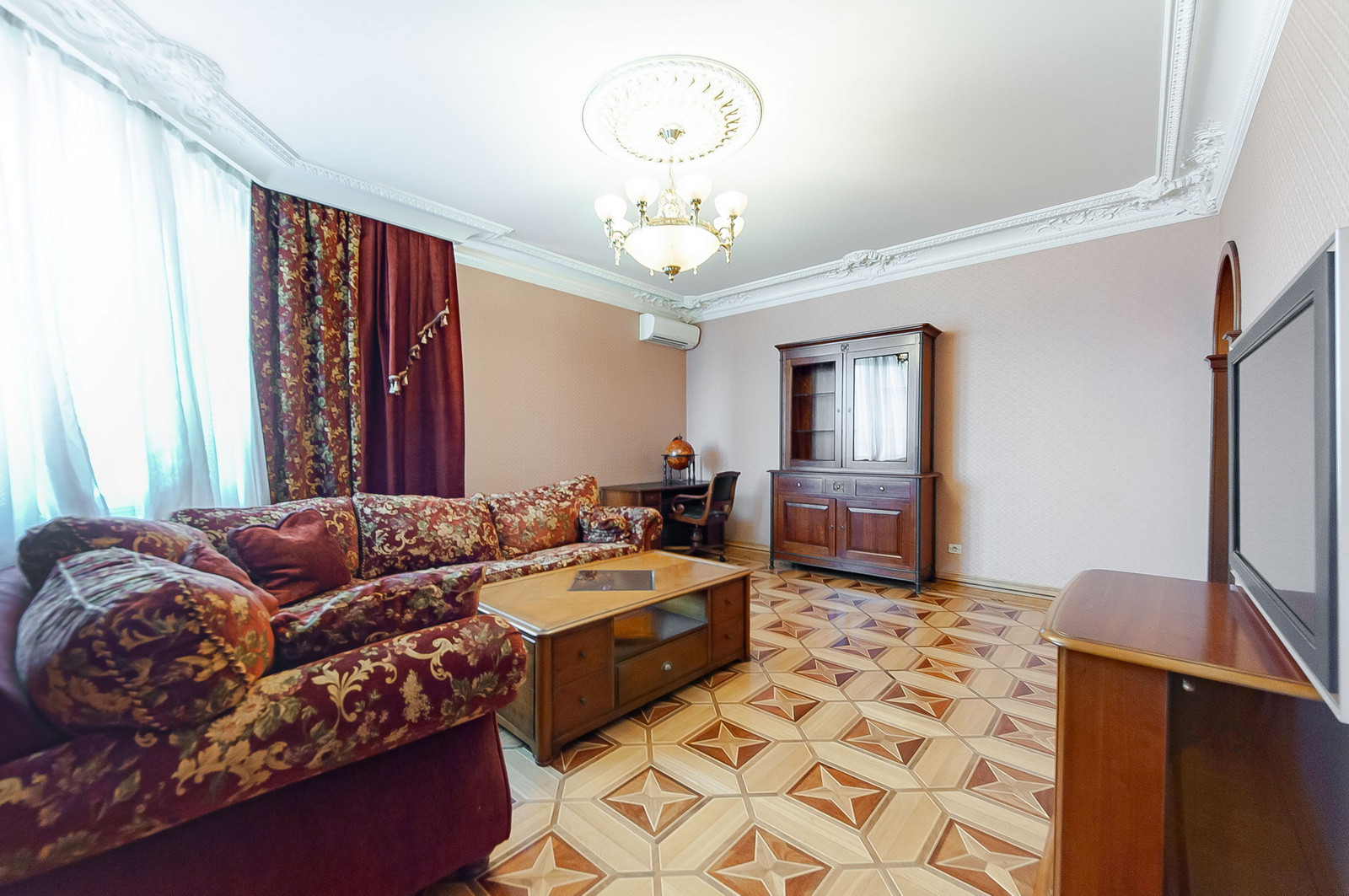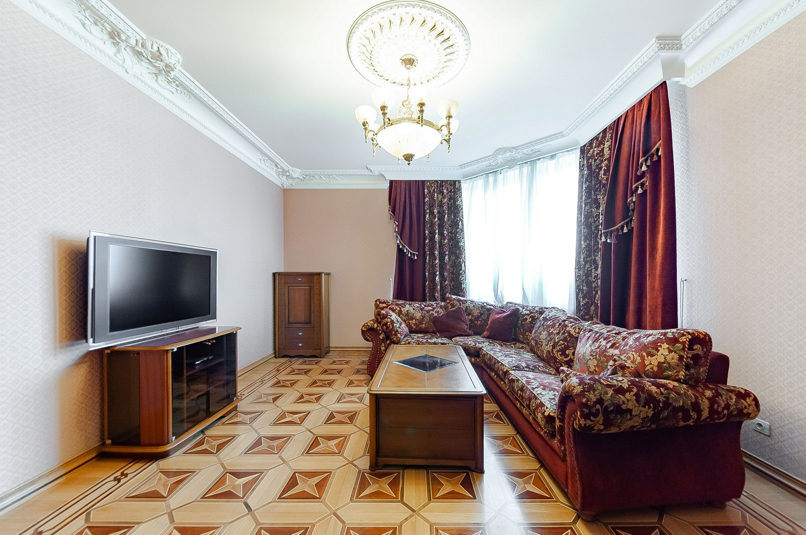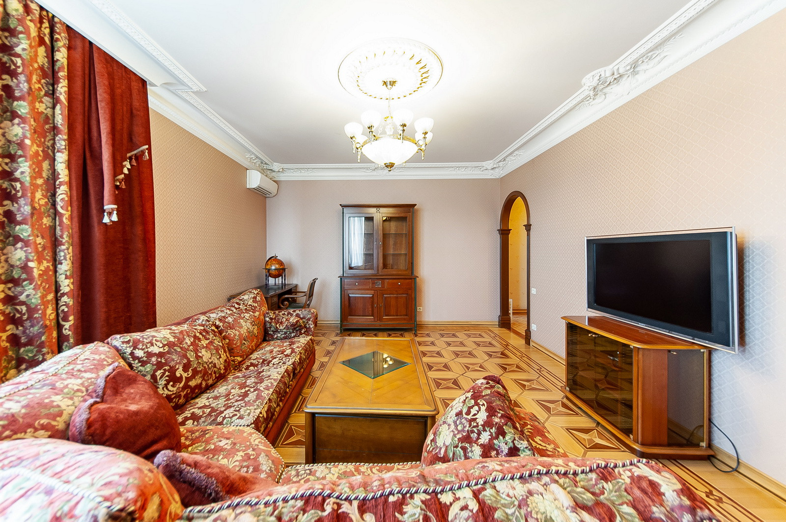 Гостиная, две изолированные спальни, два совмещённых санузла, просторная кухня.