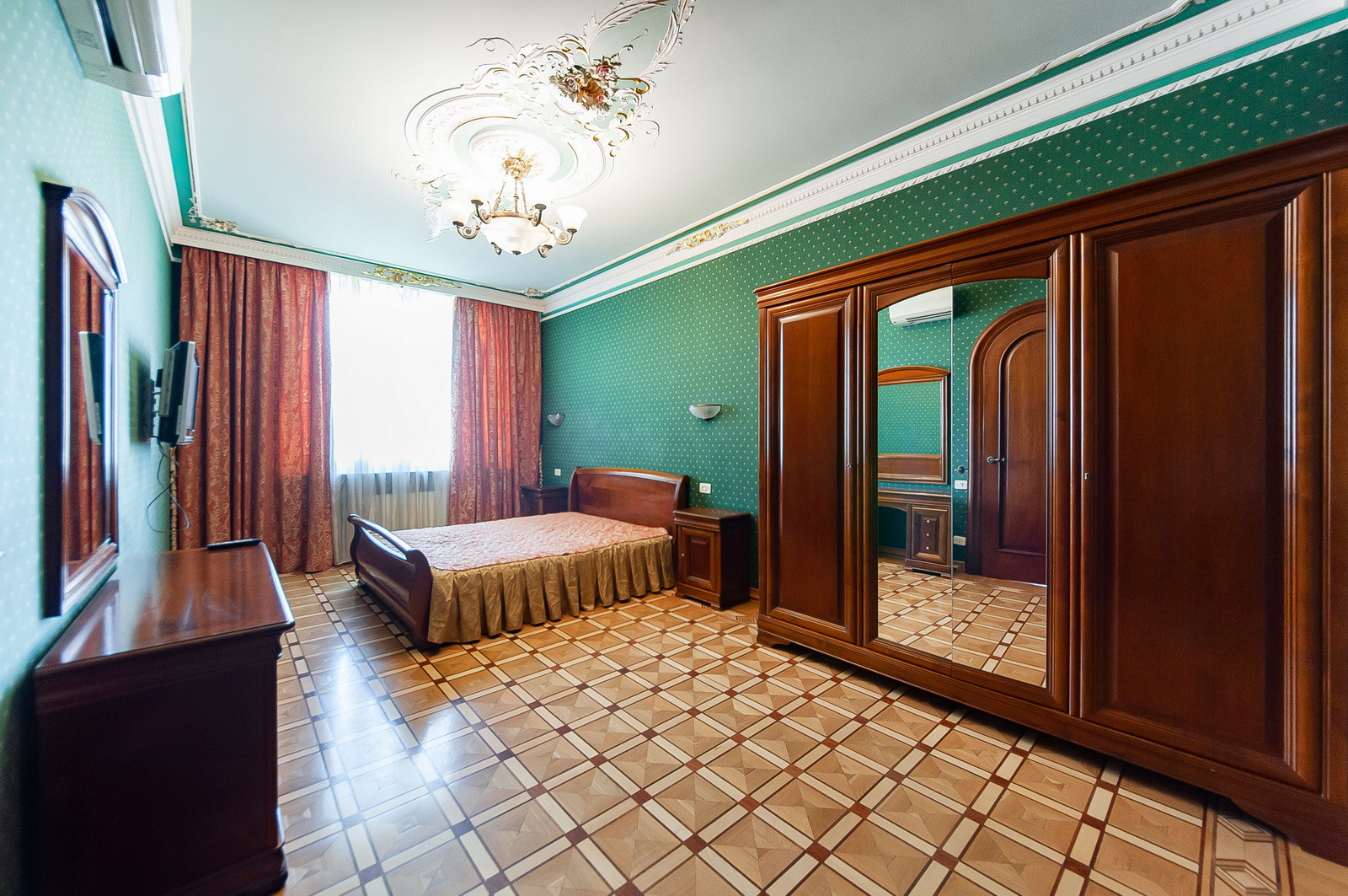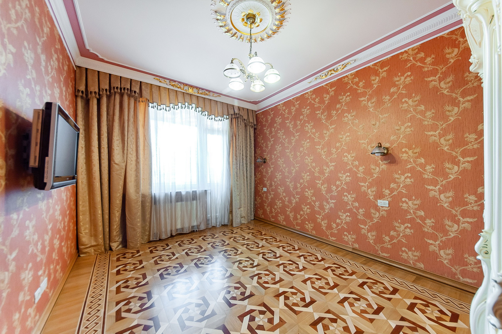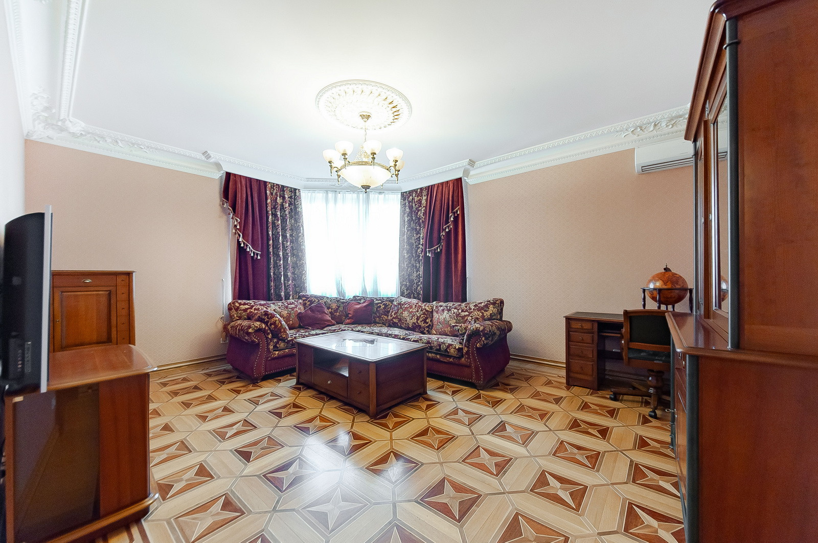 Гостиная, две изолированные спальни, два совмещённых санузла, просторная кухня.