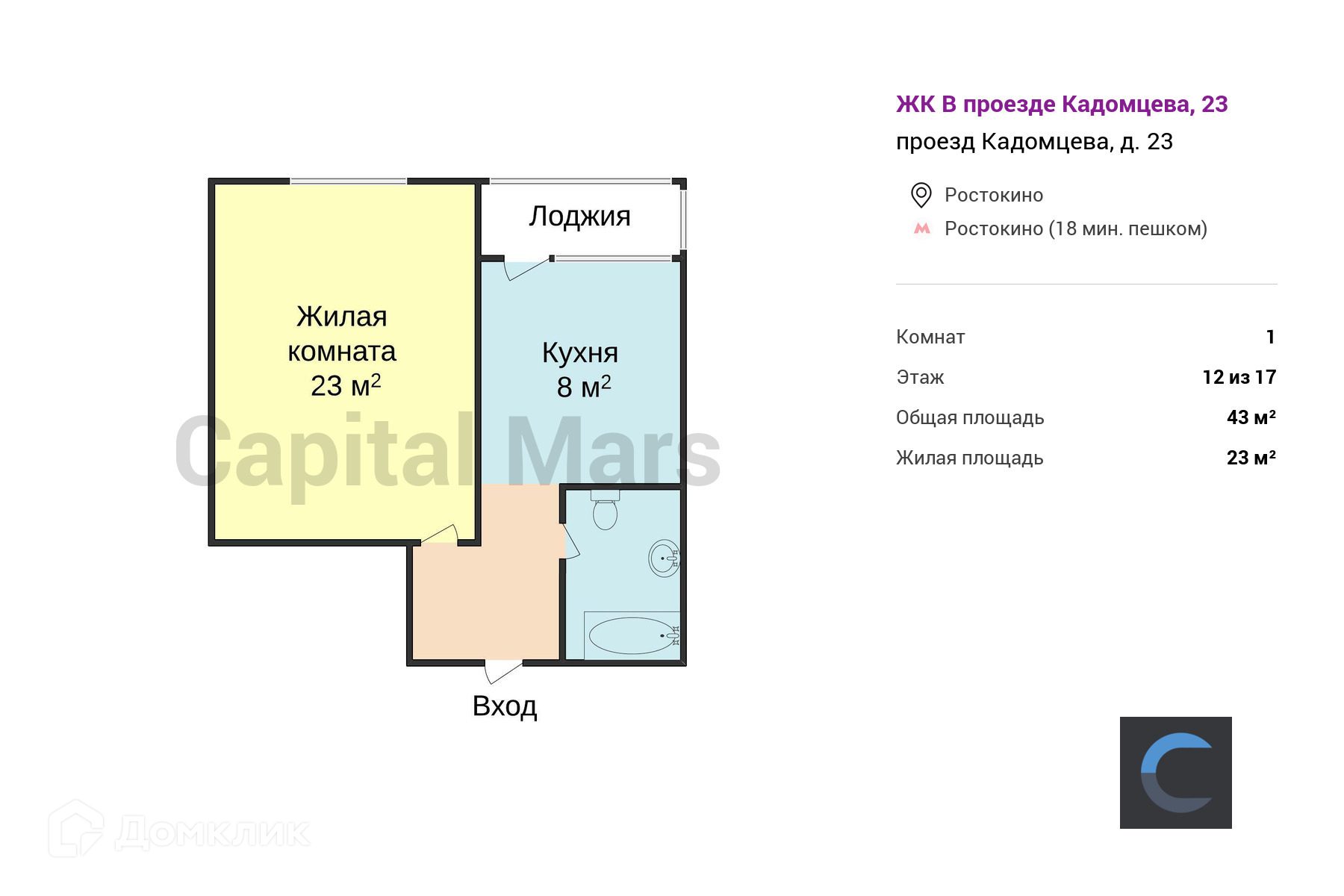 - Объект представляет агент Capital Mars - Дарья.