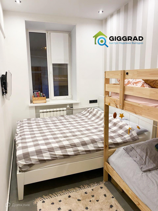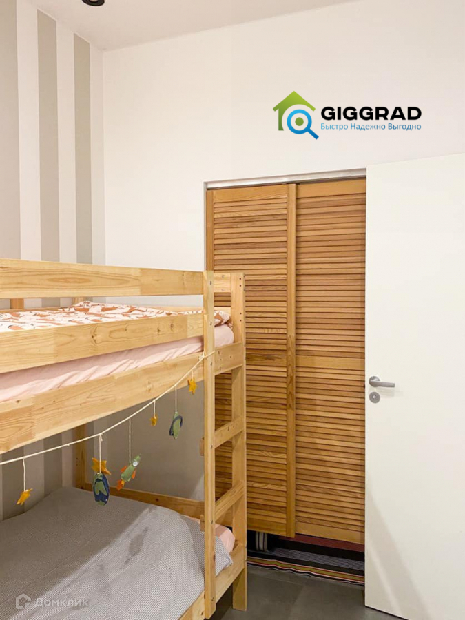 2 комнаты: гостиная совмещенная с кухней и спальня с гардеробом. В спальне - большая кровать - ширина 180м и двухъярусная детская кровать. В гостиной есть система шкафов.