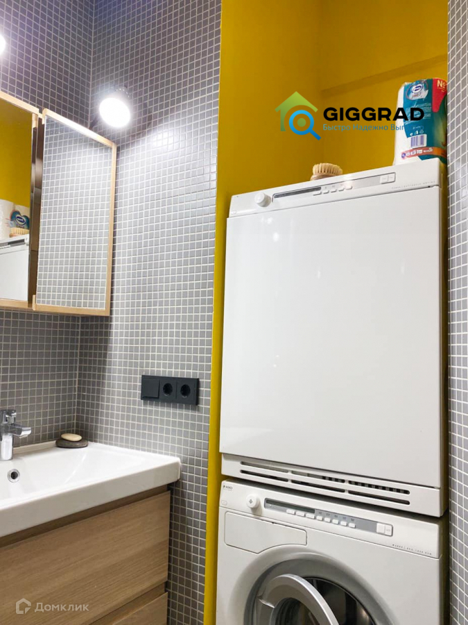В квартире есть вся необходимая техника: стиральная и сушильная машины, посудомоечная машина, холодильник, плита, духовка, вытяжка.