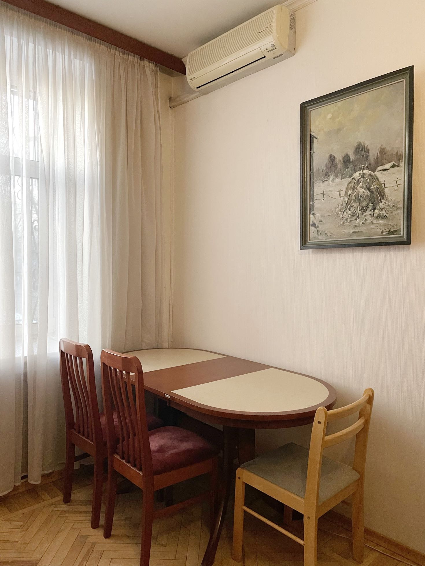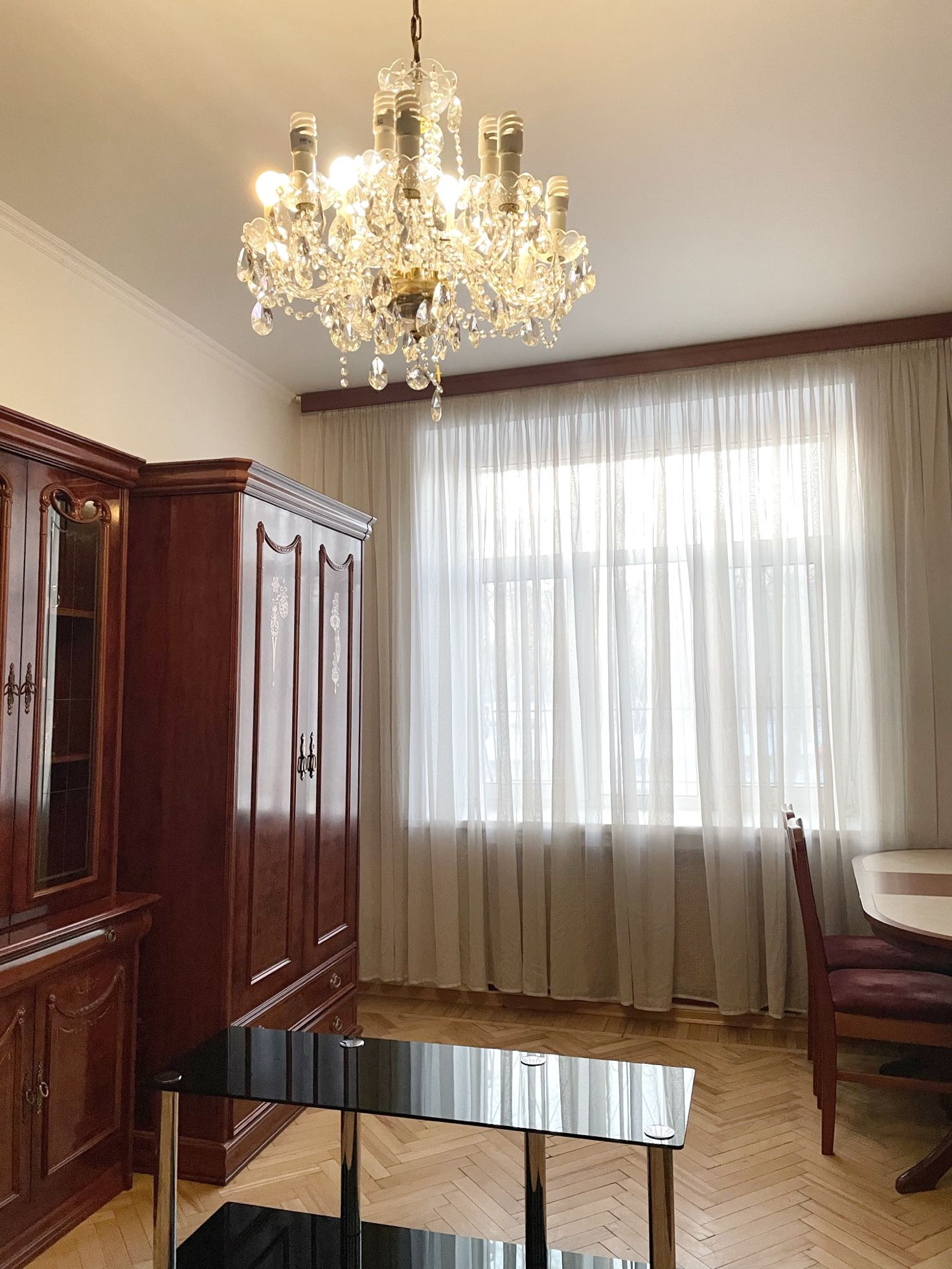 Общая площадь квартиры 58 кв.м. Высота потолков 3 м. Интерьер в классическом стиле.
