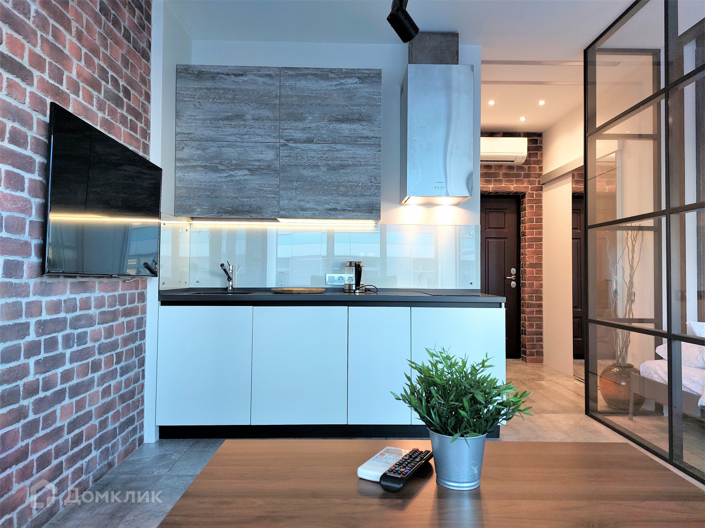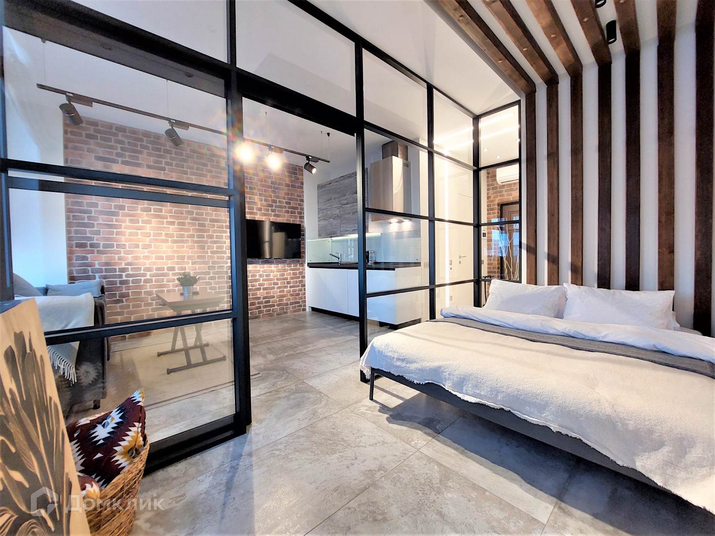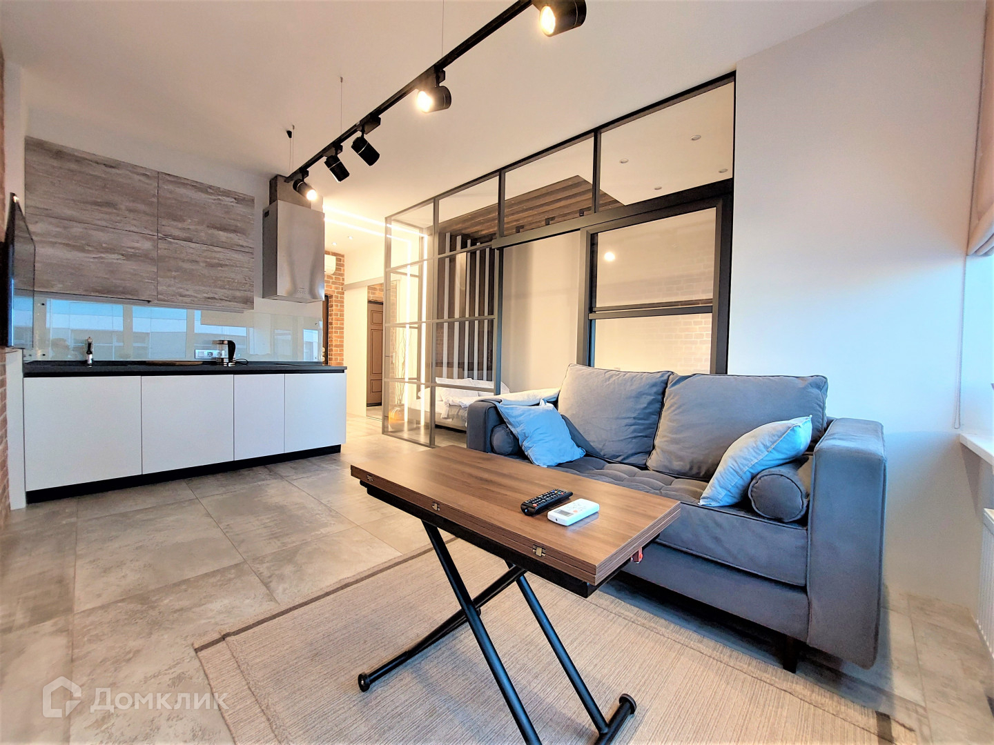 Планировка: Кухня-гостиная, с современной кухней, большим телевизором; В изолированной спальне большая двуспальная кровать; Гардеробная комната; Совмещенный санузел с душевой и стиральной машиной. В квартире имеется все необходимое для комфортного проживания.