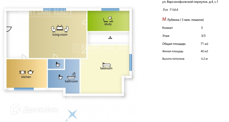 3-комнатная квартира, 73 м2, в аренду на длительный срок в Москве, Варсонофьевский переулок, 4с1