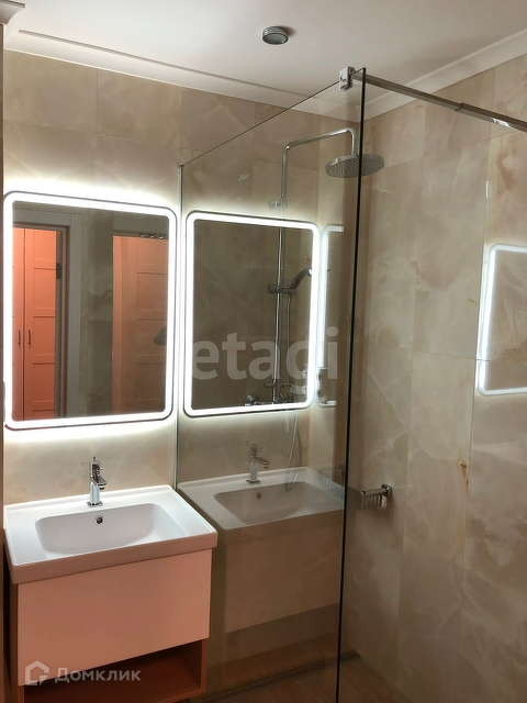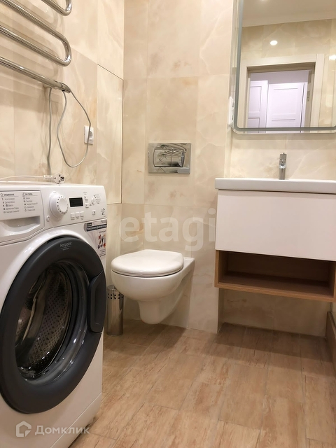 В ванной комнате итальянская плитка, душевая, стиральная машина.