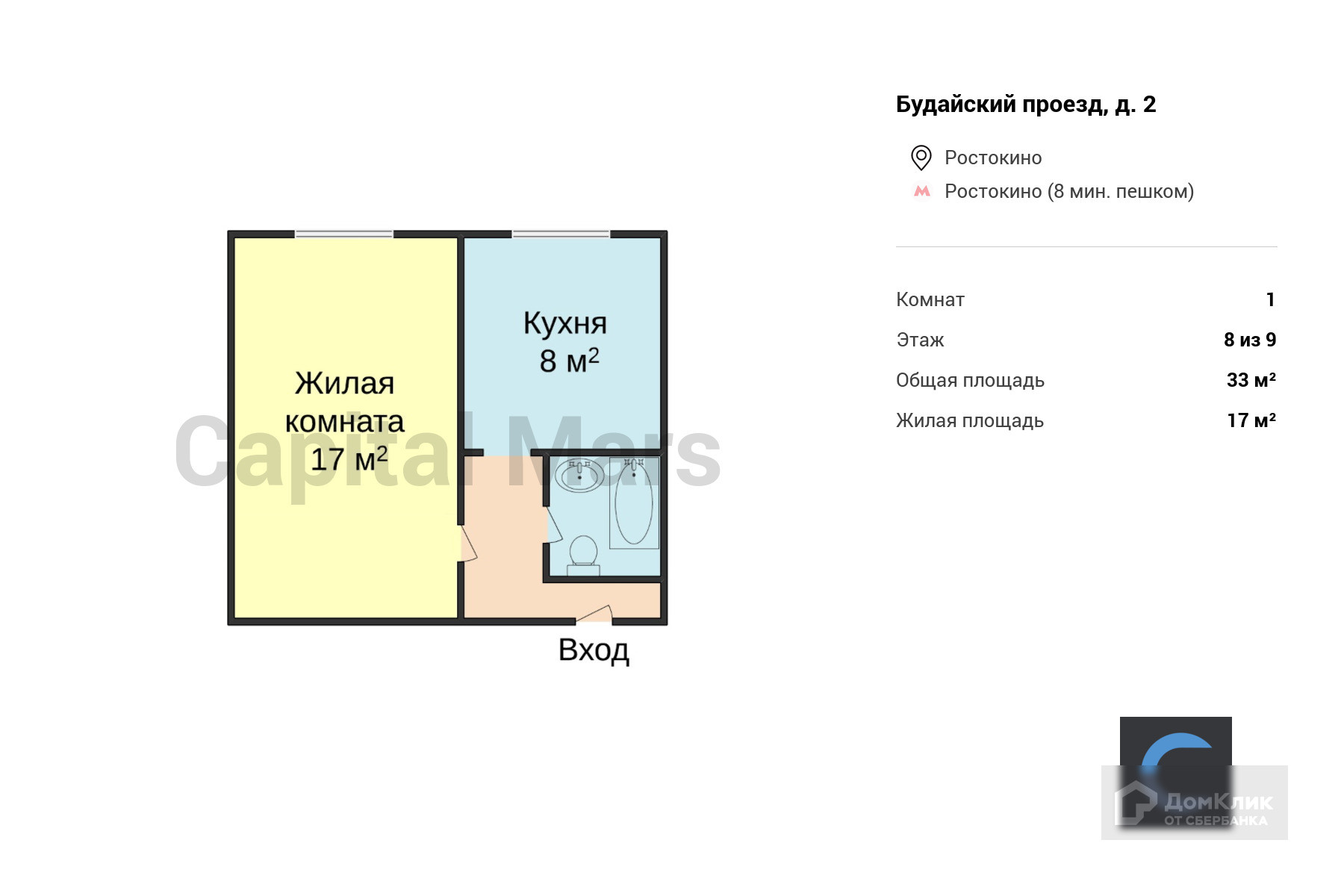 Общая площадь 33 м2
