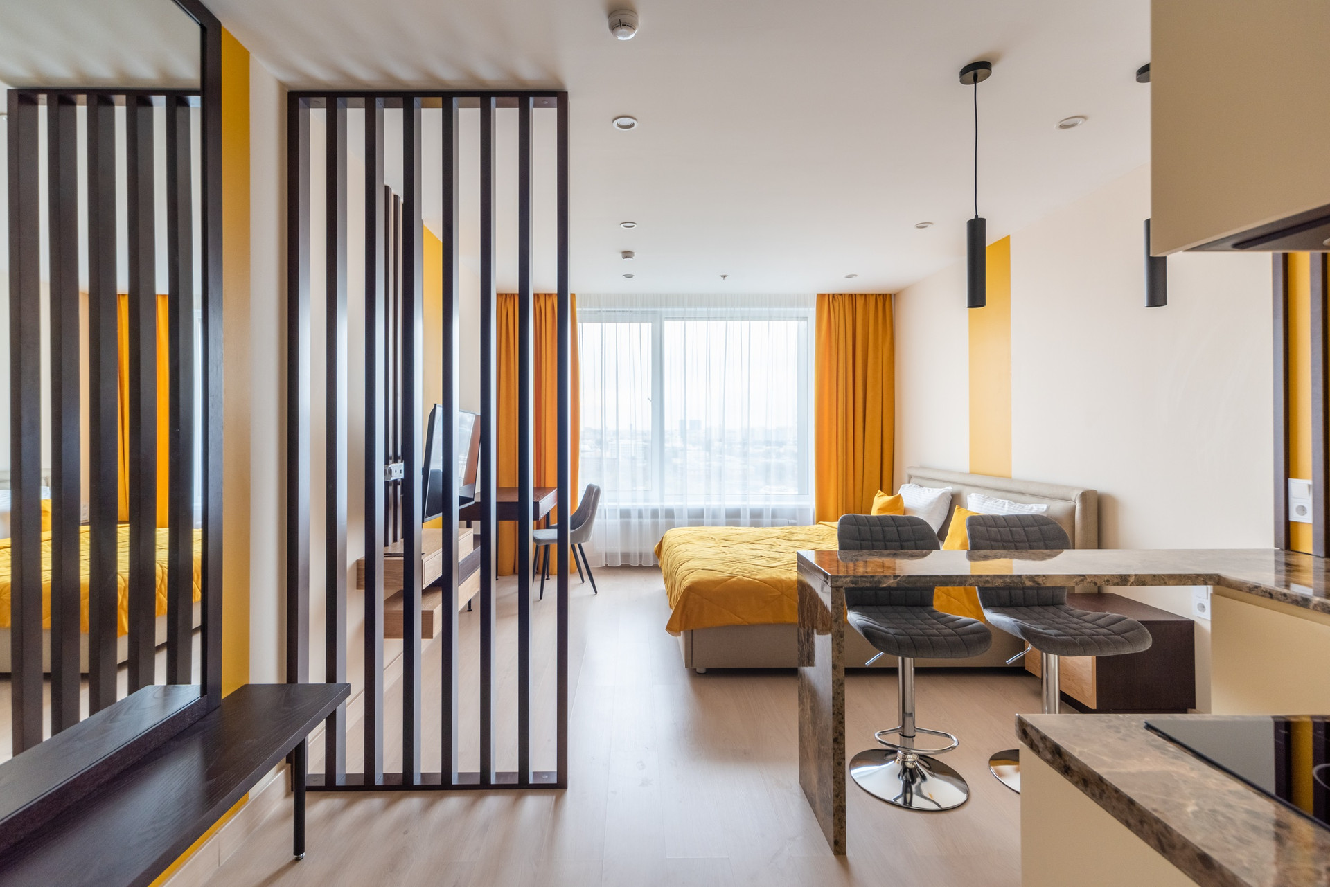 Светлые апартаменты студийной планировки предлагаются в апарт-отеле "YE'S Ботанический сад" для проживания. Качественная отделка в сочетании с удобной мебелью образуют комфортабельное пространство для жизни. Из окон открывается потрясающий вид на город. Охраняемая территория комплекса располагает парковкой. Поблизости есть множество мест для прогулок на свежем воздухе - парки Сад будущего, Капустинский и Леоновская роща. О ЖИЛОМ КОМПЛЕКСЕ - ЖК бизнес-класса, 25-этажный монолитный дом 2021 - На первом этаже ЖК большое лобби: зона коворкинга, колясочная, ресторан, кофейня - 6 пассажирских лифтов, 1 грузовой АПАРТАМЕНТЫ ПОД КЛЮЧ Площадь 27,9 кв м (кухня-гостиная). Кухня-гостиная: гарнитур + холодильник, стиральная машина, варочная панель, духовой шкаф; кондиционер, телевизор, тумба под тв, стол, стулья,кровать, туалетный столик с зеркалом, кондиционер. Большой шкаф в коридоре. О ЛОКАЦИИ - 1 минута от метро или МЦК "Ботанический сад" - 6 км - до ТТК, 9 км до Садового кольца - Удобный выезд на СВХ и проспект Мира - Около дома современный парк "Сад будущего" (озеро, детские площадки, зоны воркаута, коворкинг) - 15 минут пешком до ВДНХ и Ботанического сада РАН ИНФРАСТРУКТУРА - Детские сады,школы, детская поликлиника 11, взрослая поликлиника 107 - ТЦ "Европолис с кинотеатром и фитнесом (15 минут пешком) - Магазины, аптеки, банки, рестораны - Фитнес-клуб World class (5 минут пешком)