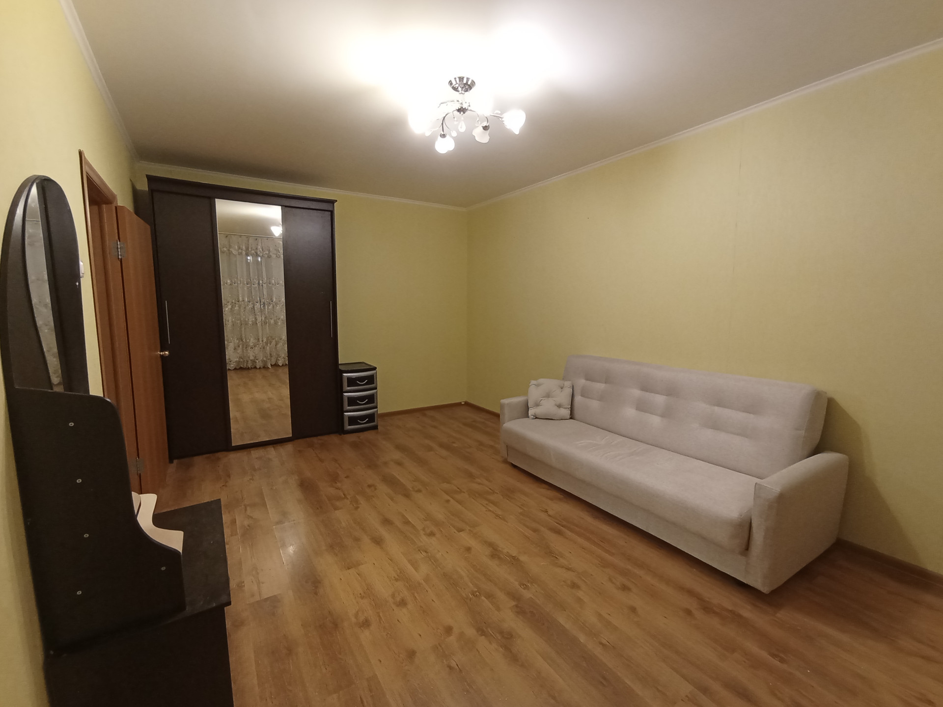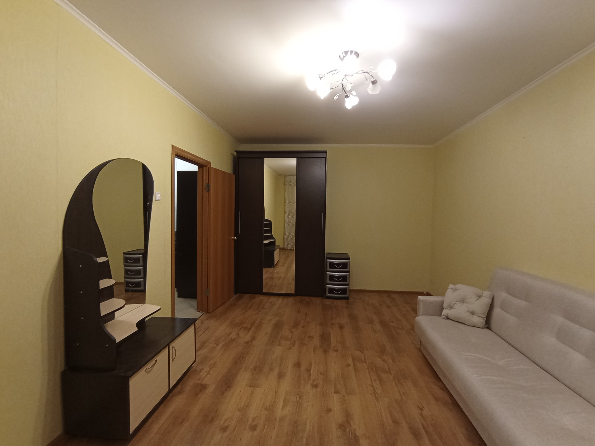 Сдается 1-комн квартира, в пешей доступности от метро. В квартире вся необходимая мебель и бытовая техника (новый холодильник, СВЧ-печь, стиральная машина, 3 шкафа-купе в едином цвете и стиле, новый диван, современное трюмо с большим зеркалом, люстры и пр.).  Строго БЕЗ животных. Строго НЕ курить в квартире и на балконе. У собственника могут быть другие пожелания к жильцам. Фото реальные. Арендодатель может докупить дополнительно мебель (в разумных пределах).